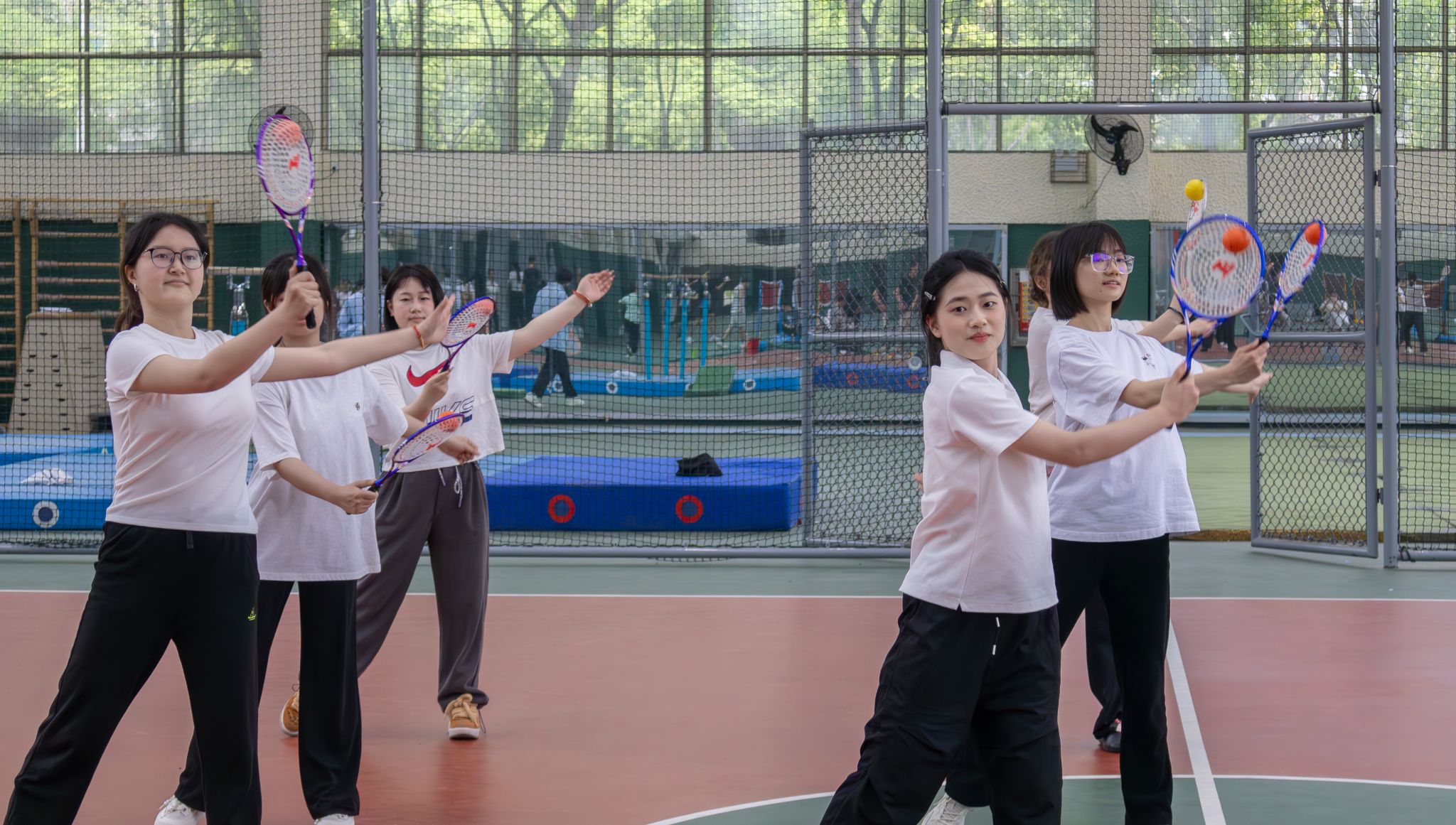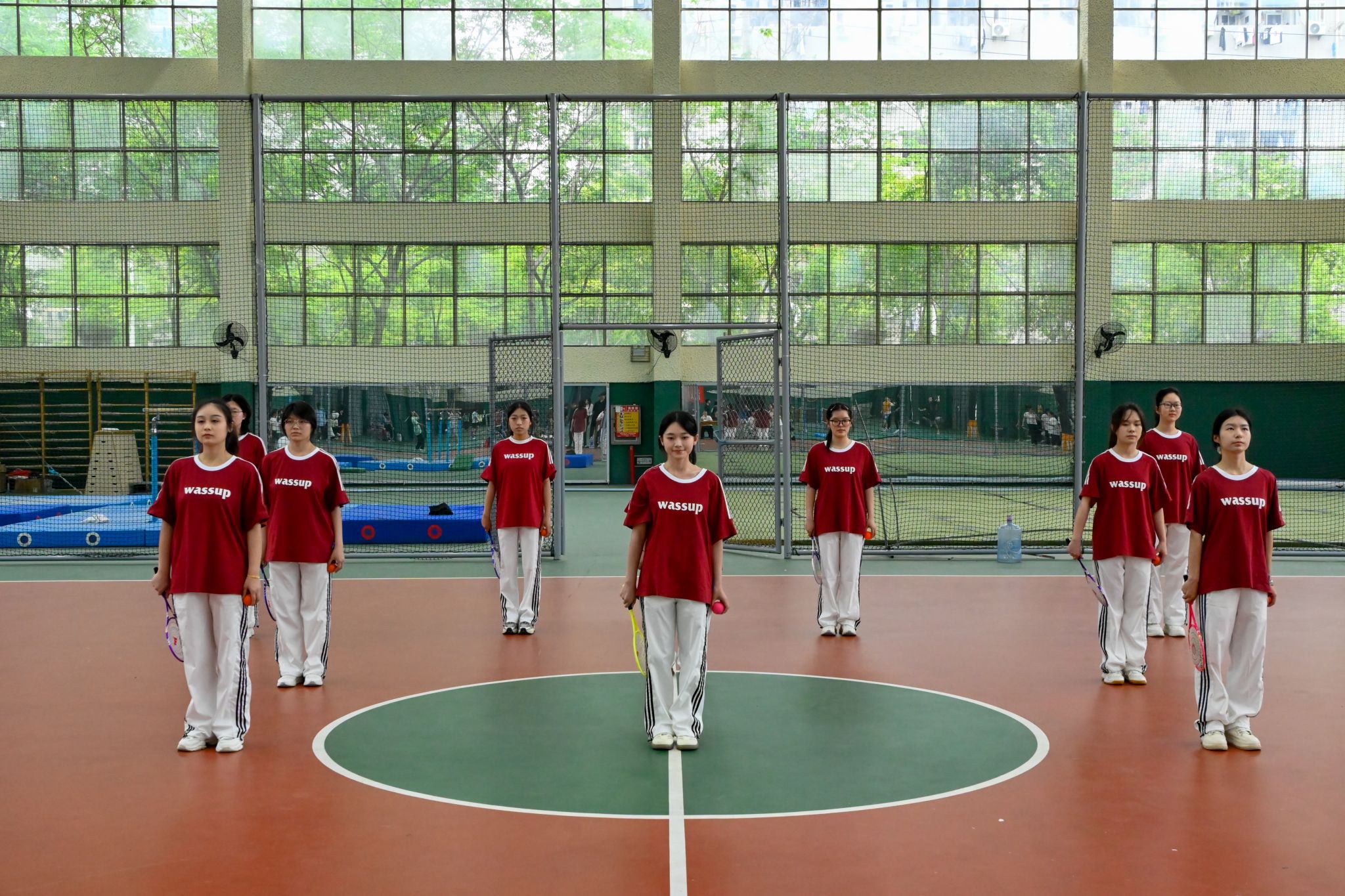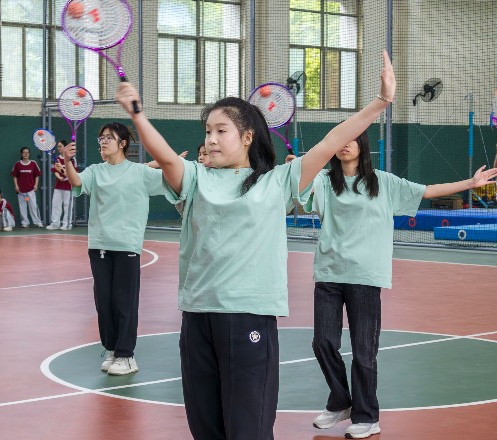集体表演运球侧面 胡泰山摄
