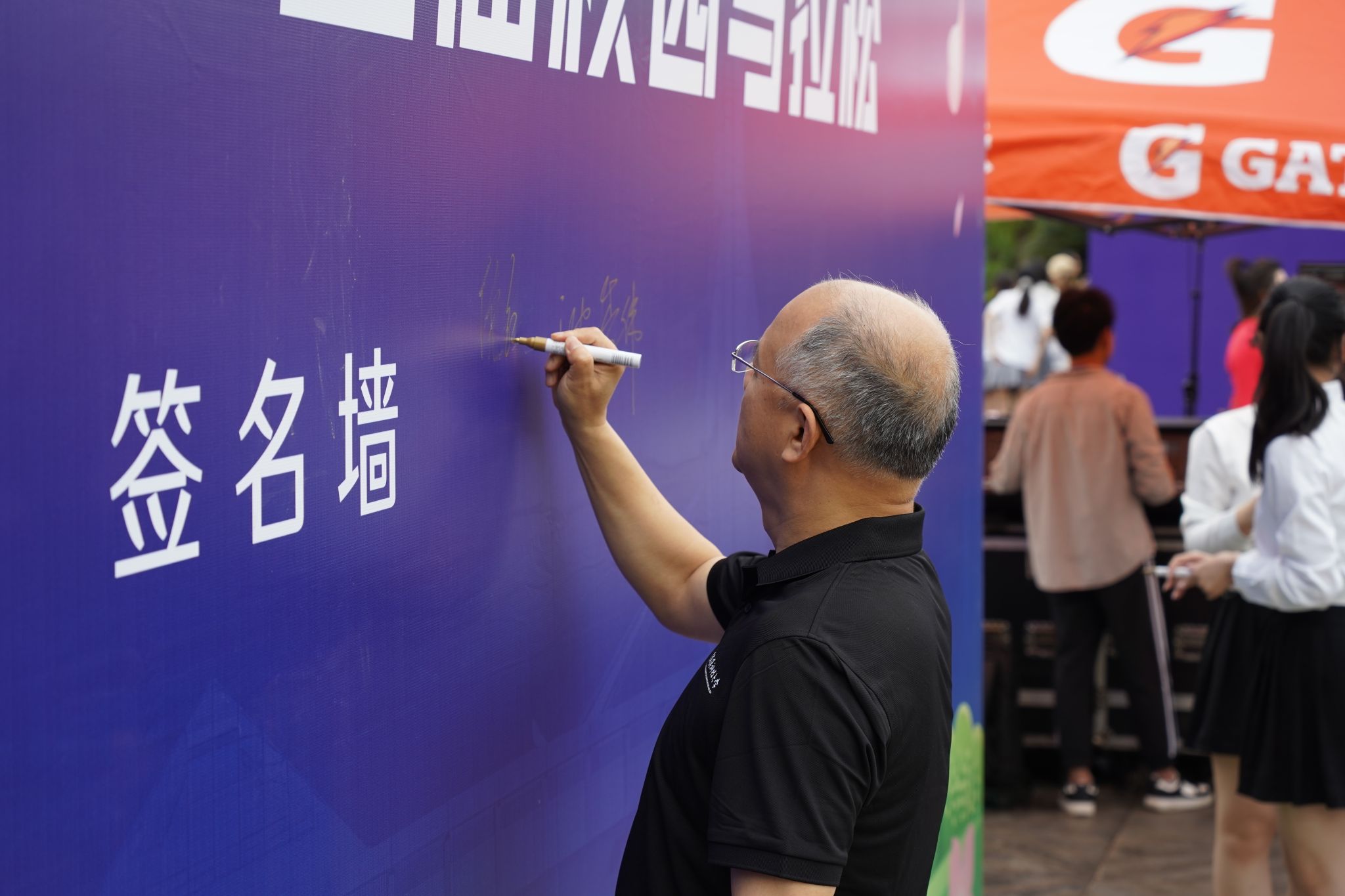 选手在签名墙签名 徐秋琳摄