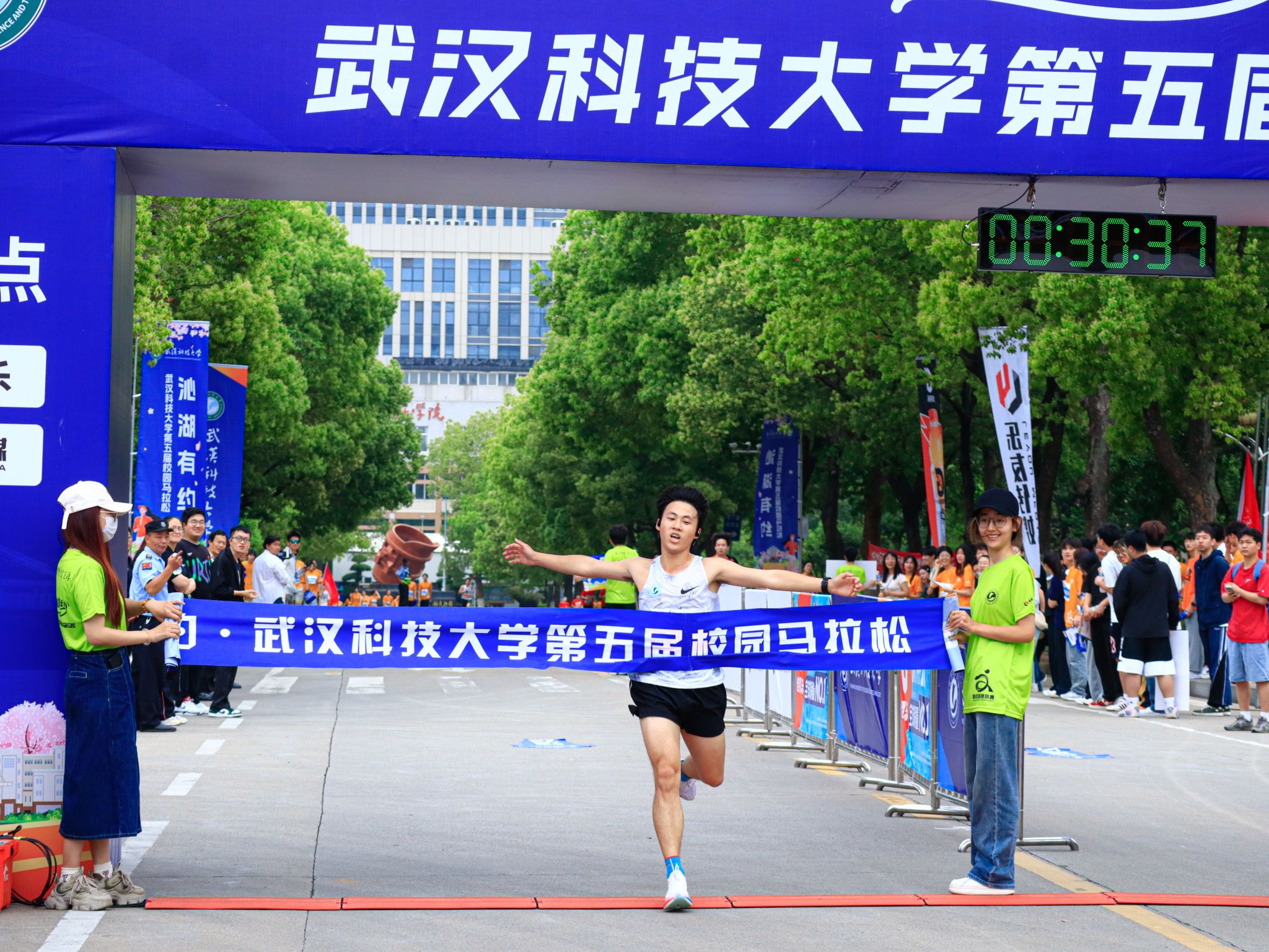 4月19日,js官网于黄家湖校区举办“沁湖有约·第五届校园马拉松”比赛。校长倪红卫鸣枪发令起跑,党委常委、组织部部长刘时新致辞。现场宣布了马拉松优秀组织奖、环湖跑“先进集体”与“环湖达人”,并为校园马拉松学生精英组女子前八名、学生精英组男子前八名、精英组团体前八名颁奖。