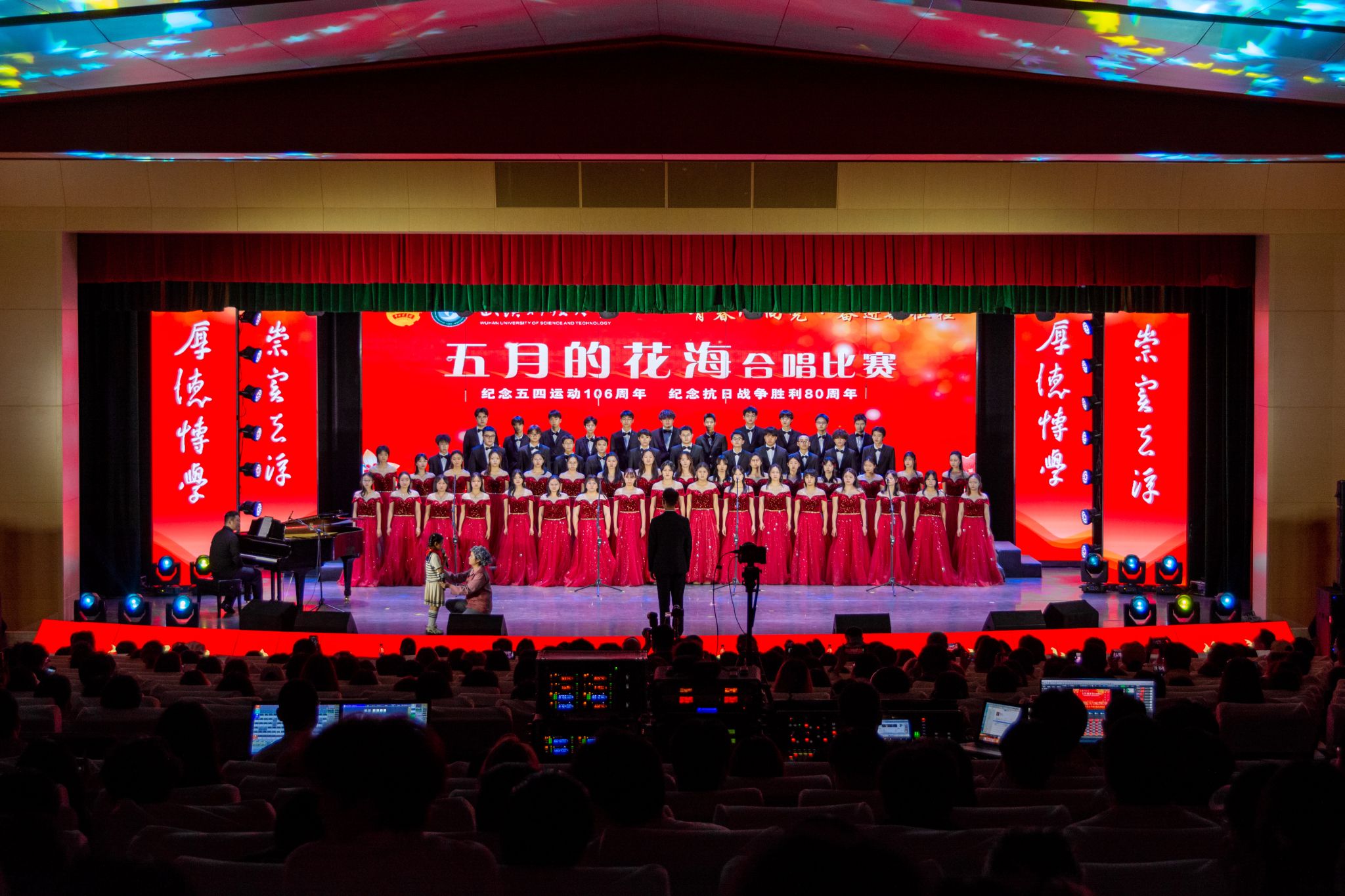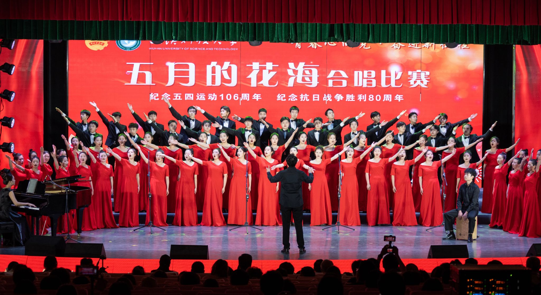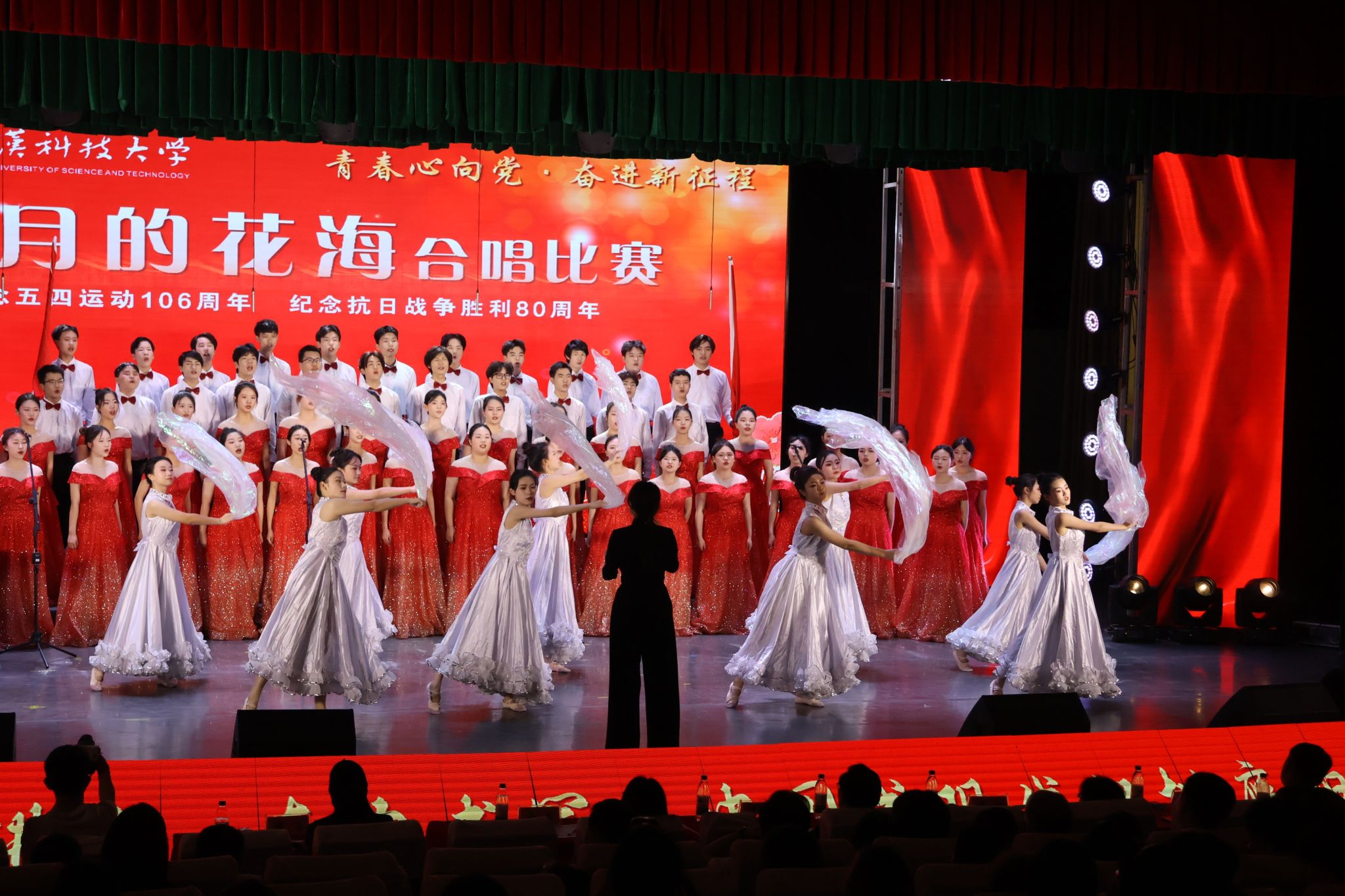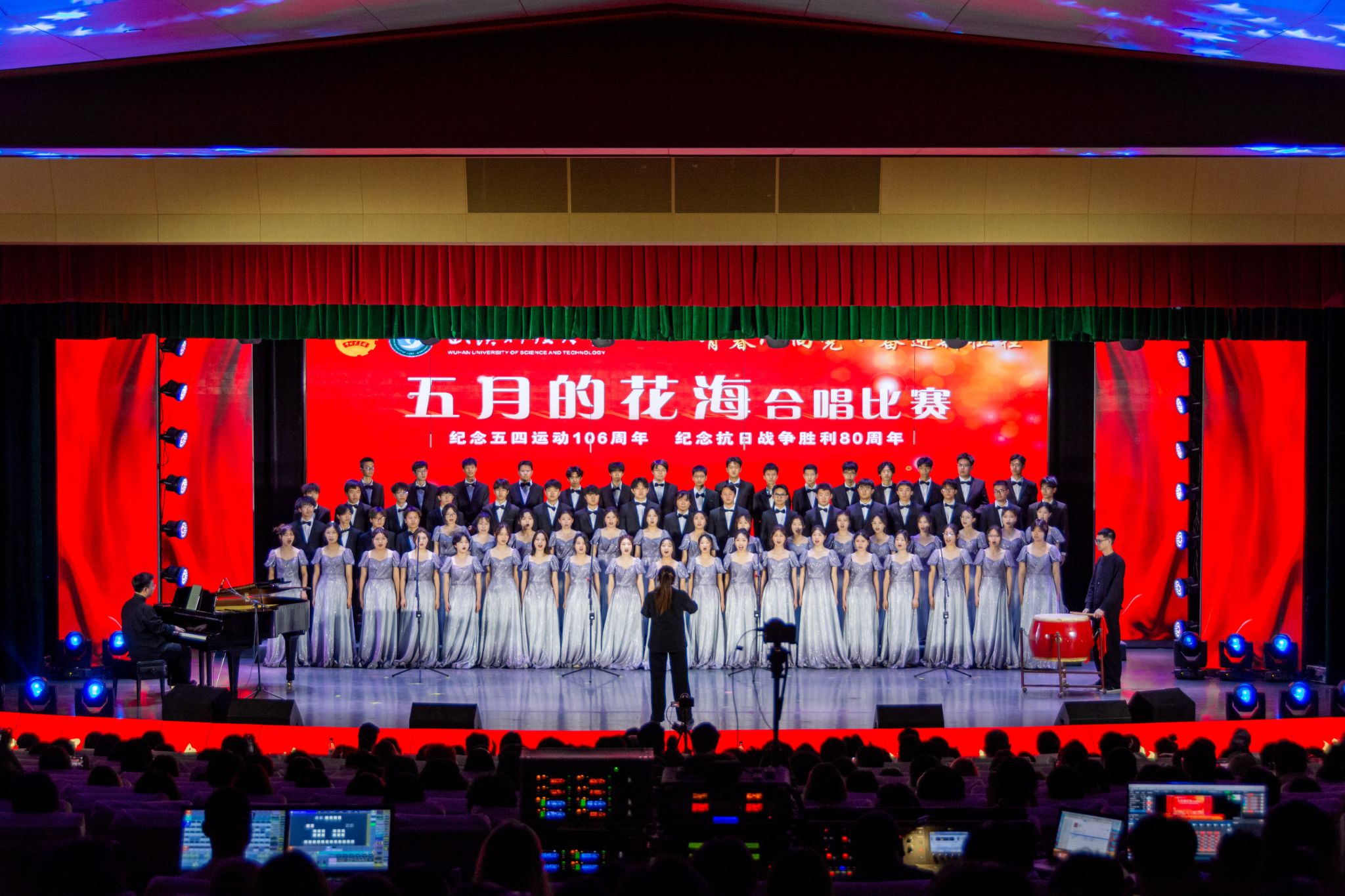 4月26日晚,js33333线路登录在黄家湖校区沁湖礼堂举行2025年五四表彰大会暨“五月的花海”合唱比赛。千余名师生齐聚一堂,用歌声纪念五四运动106周年,迎接五四青年节的到来。