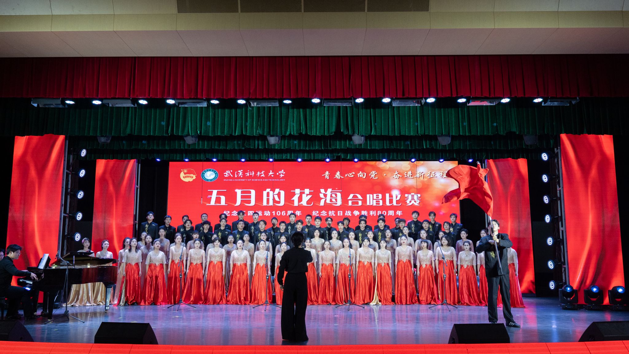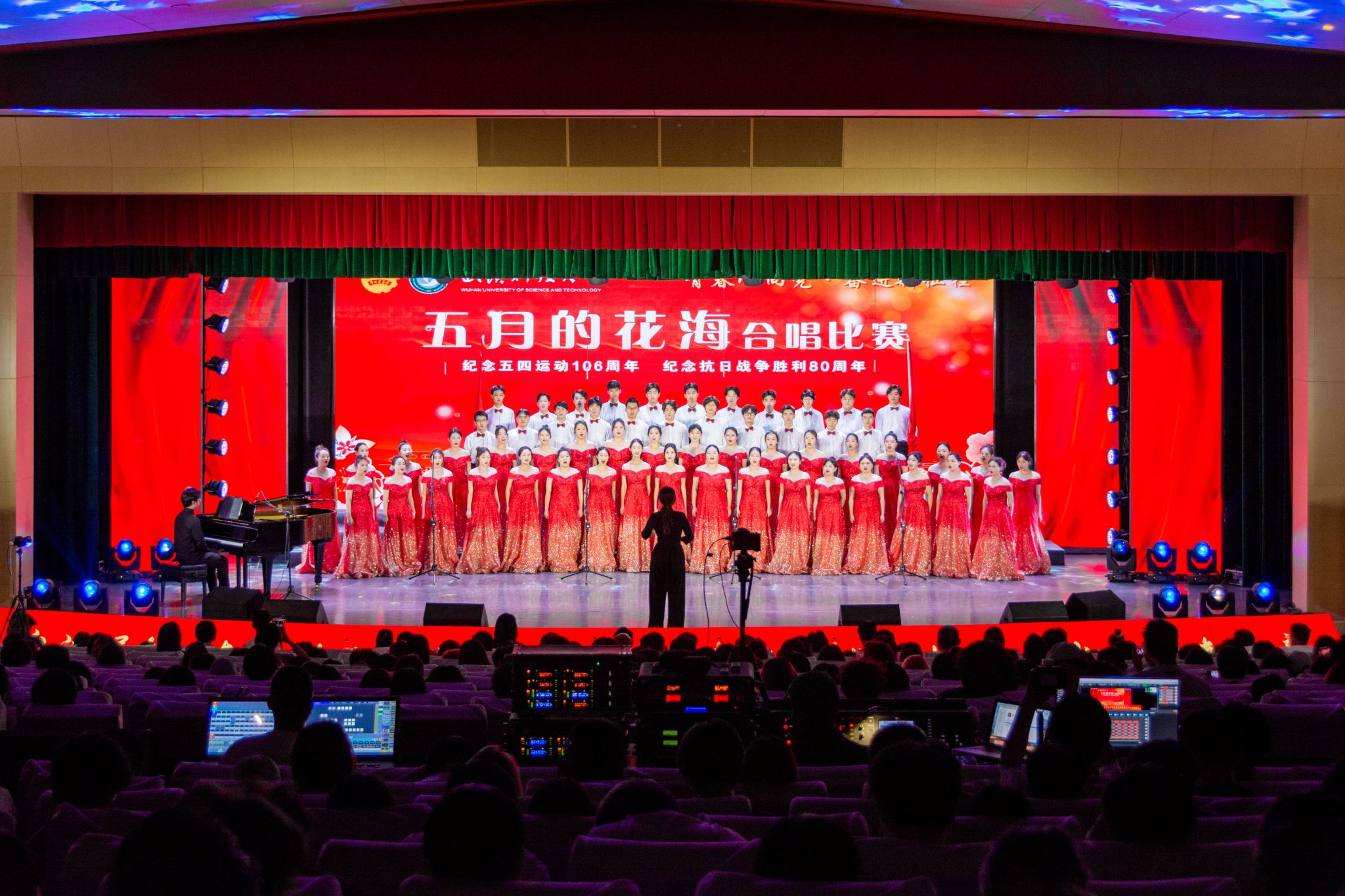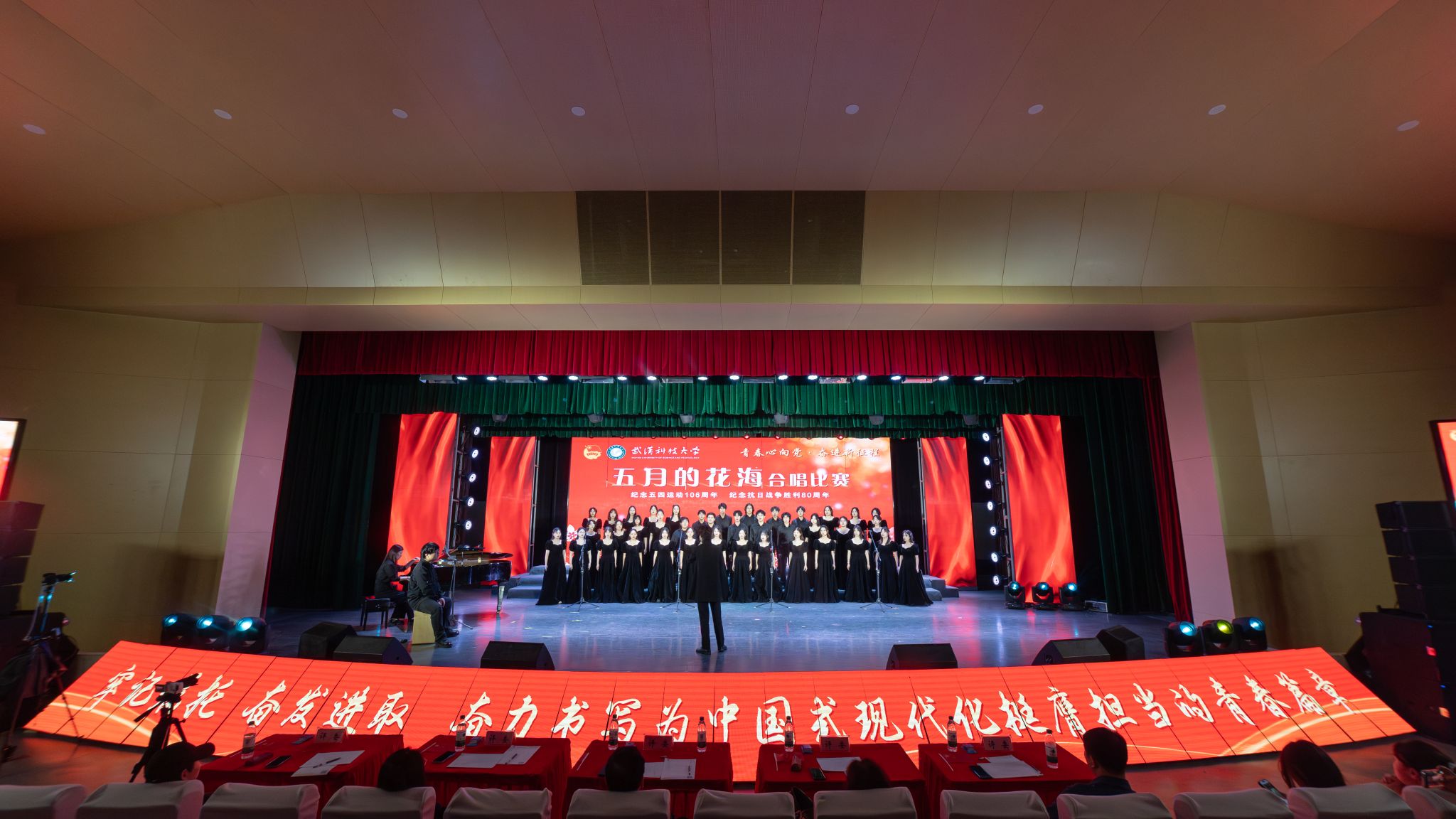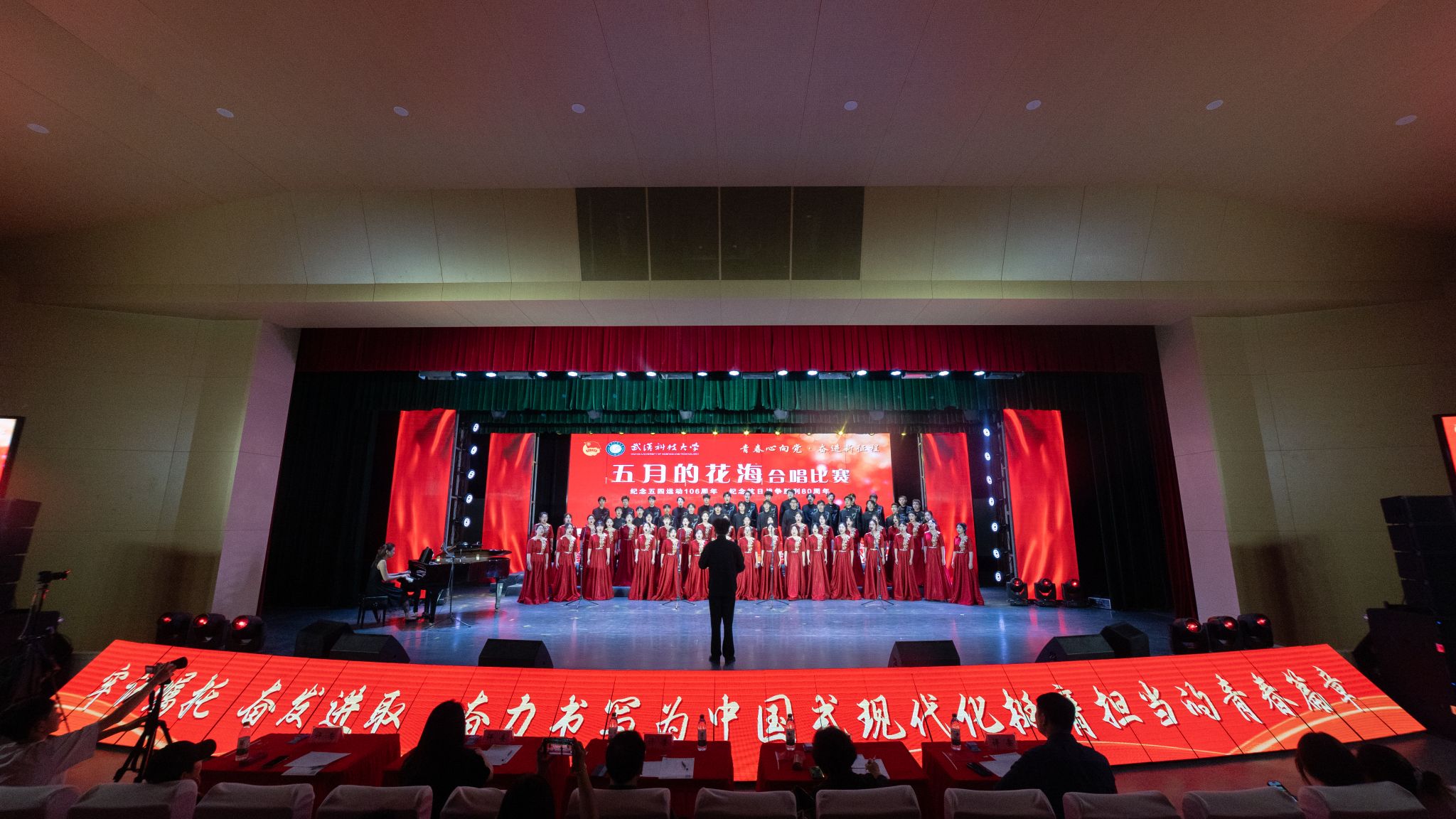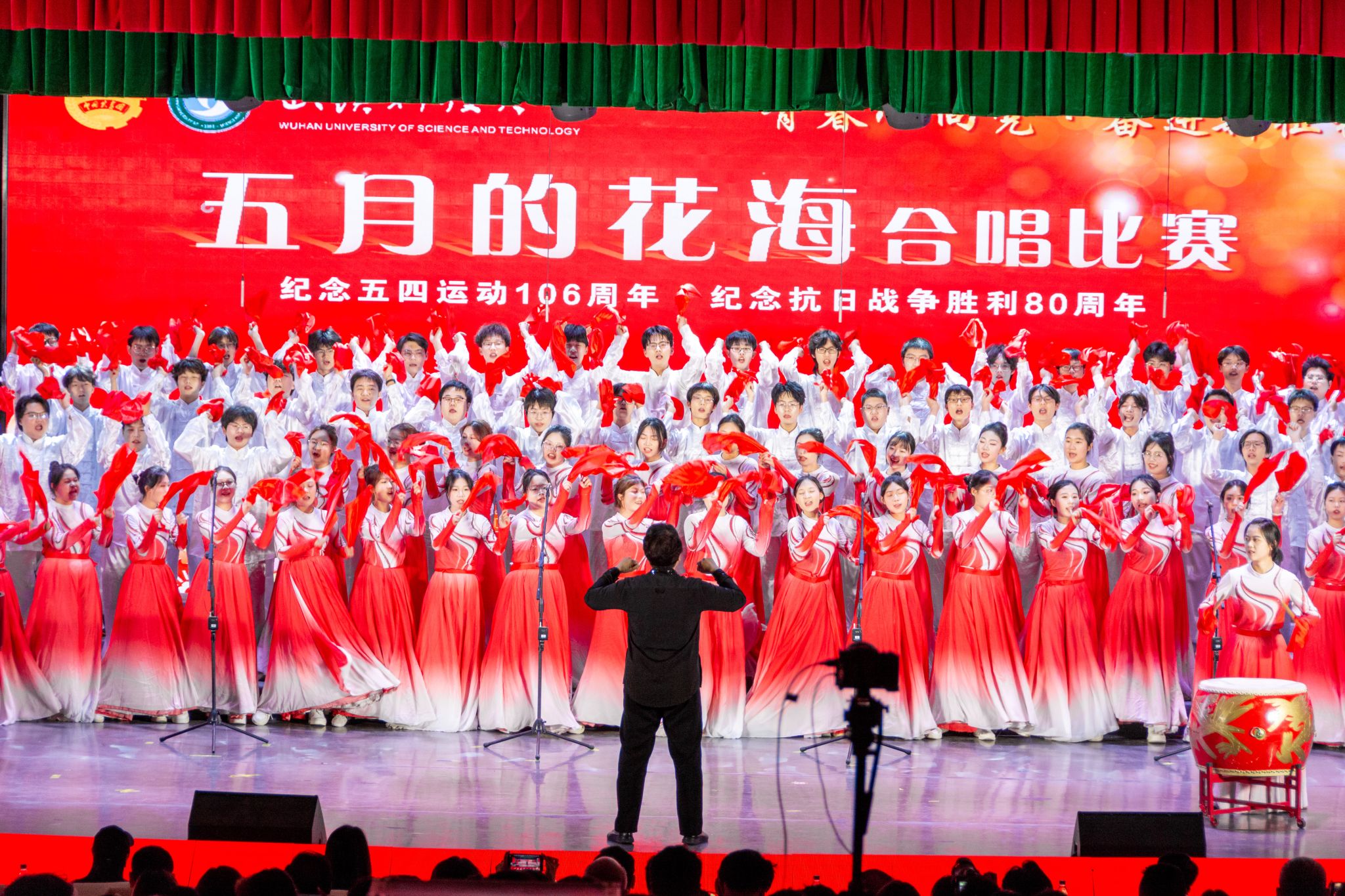 4月26日晚,js33333线路登录在黄家湖校区沁湖礼堂举行2025年五四表彰大会暨“五月的花海”合唱比赛。千余名师生齐聚一堂,用歌声纪念五四运动106周年,迎接五四青年节的到来。