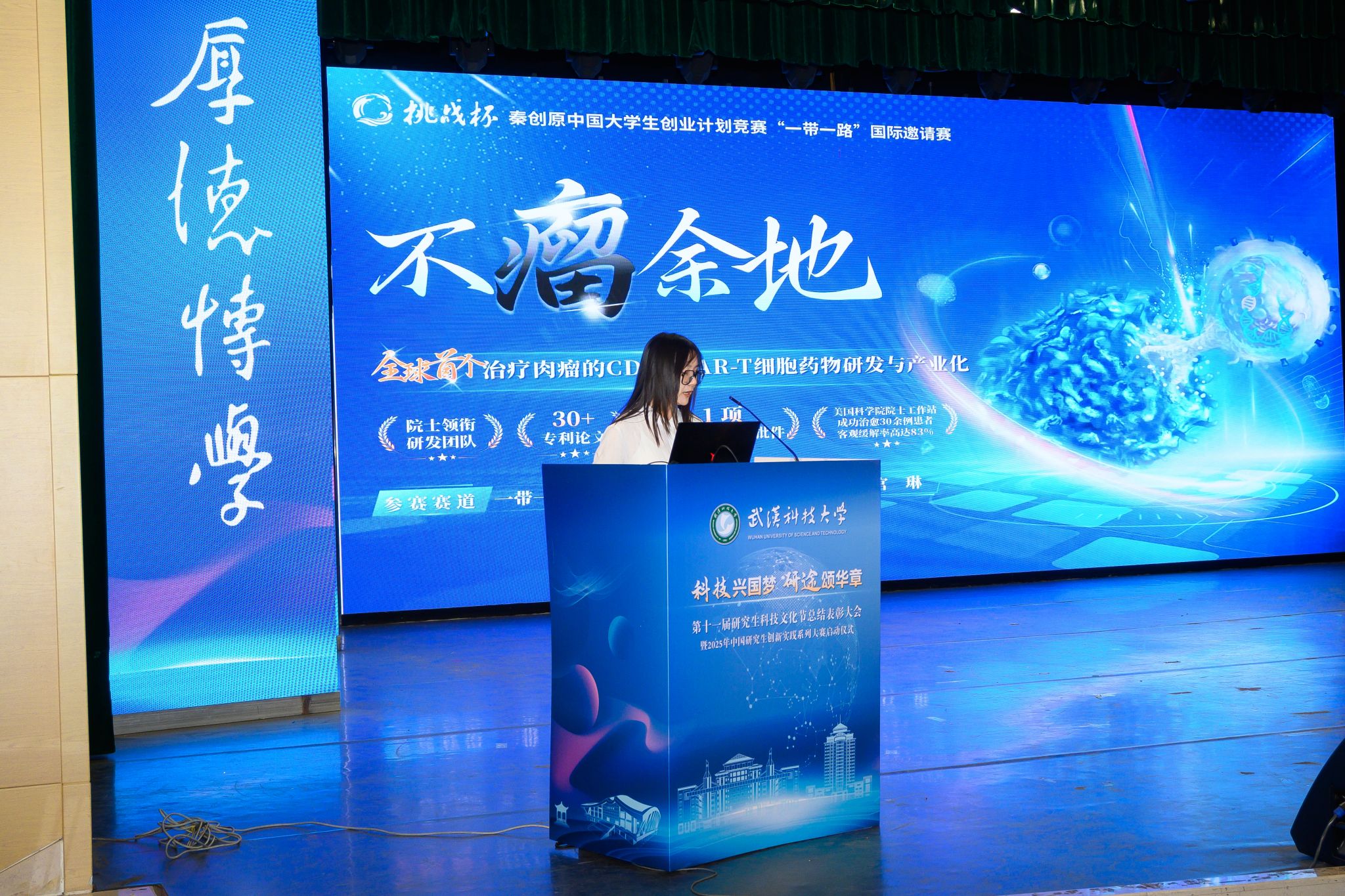 2024年“挑战杯”中国大学生创业计划竞赛(专项赛)全国金奖、中国国际大学生创新大赛(2024)总决赛铜奖团队负责人生命科学与健康学院赵官琳同学发言 刘川峰摄
