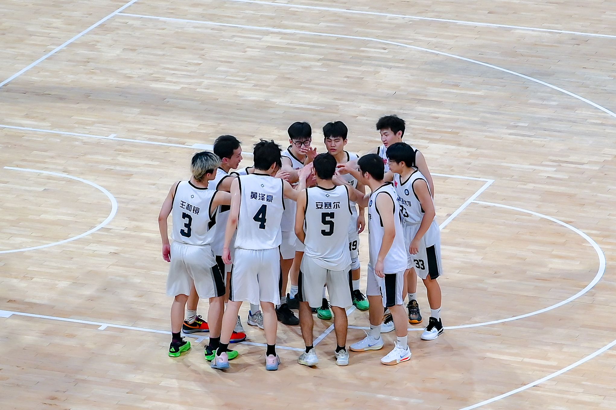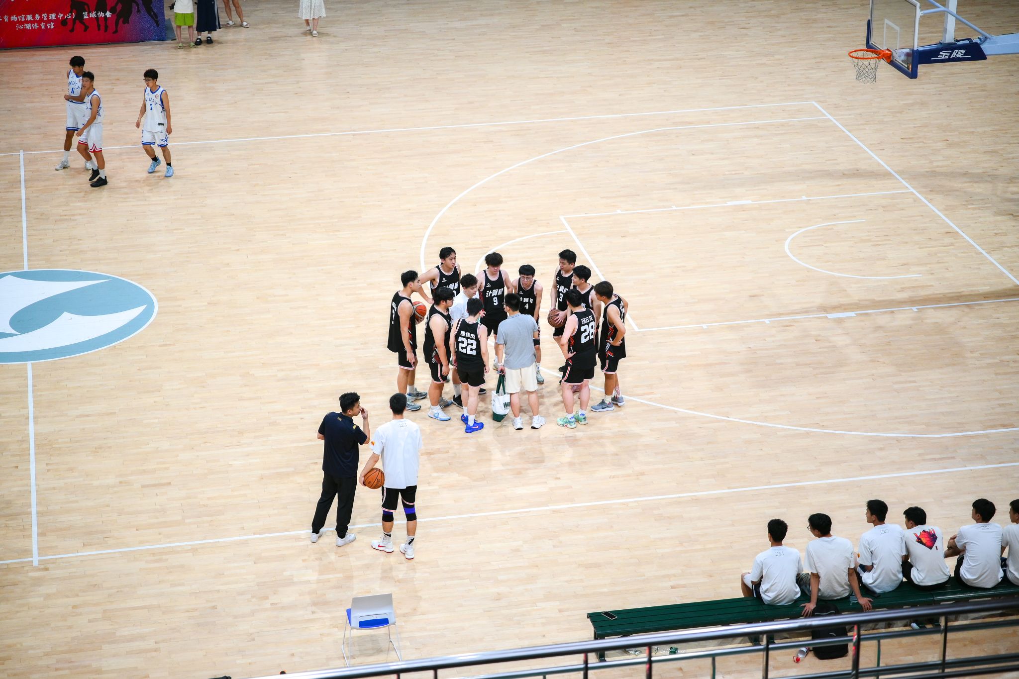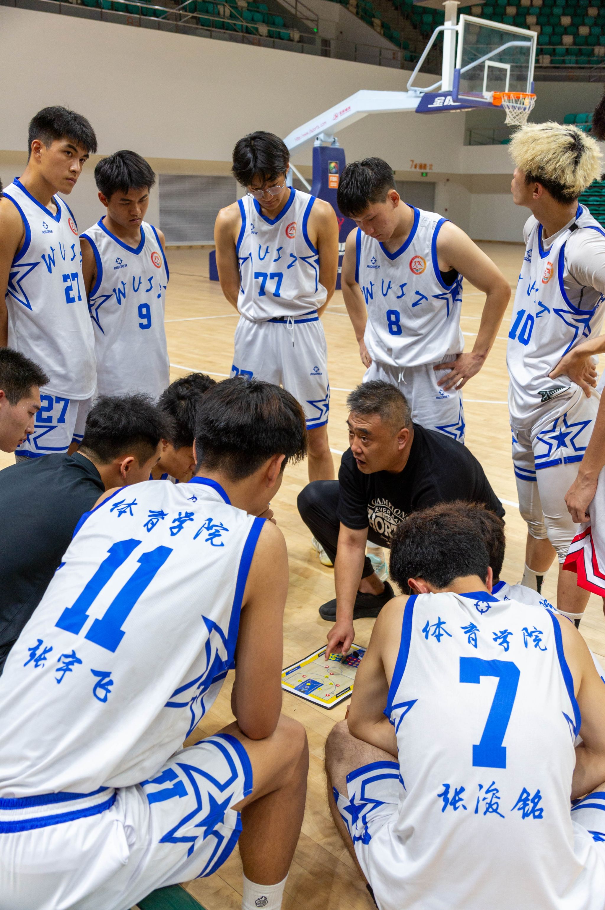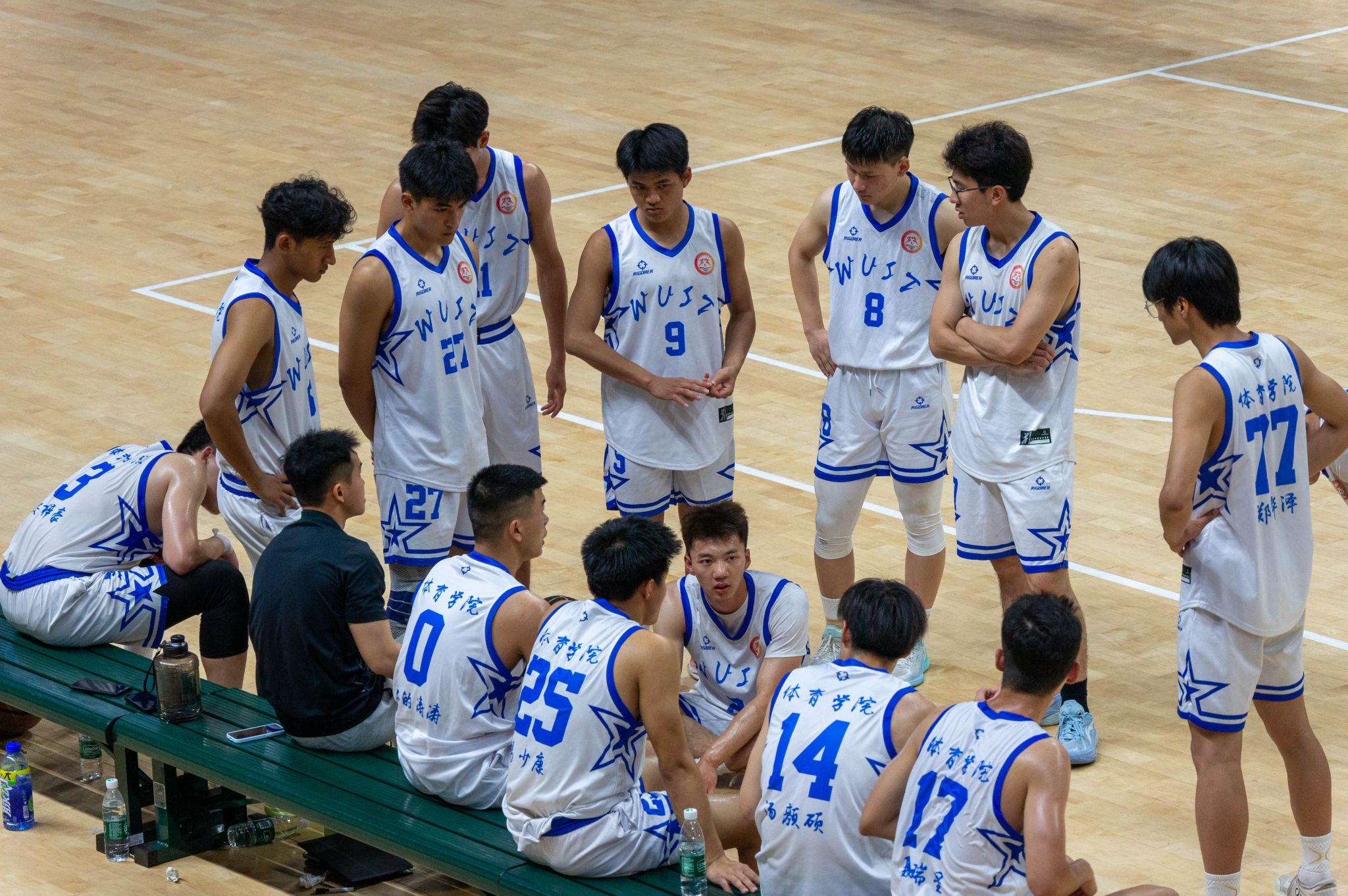 体育学院中场休息讨论战术 王翔宇摄