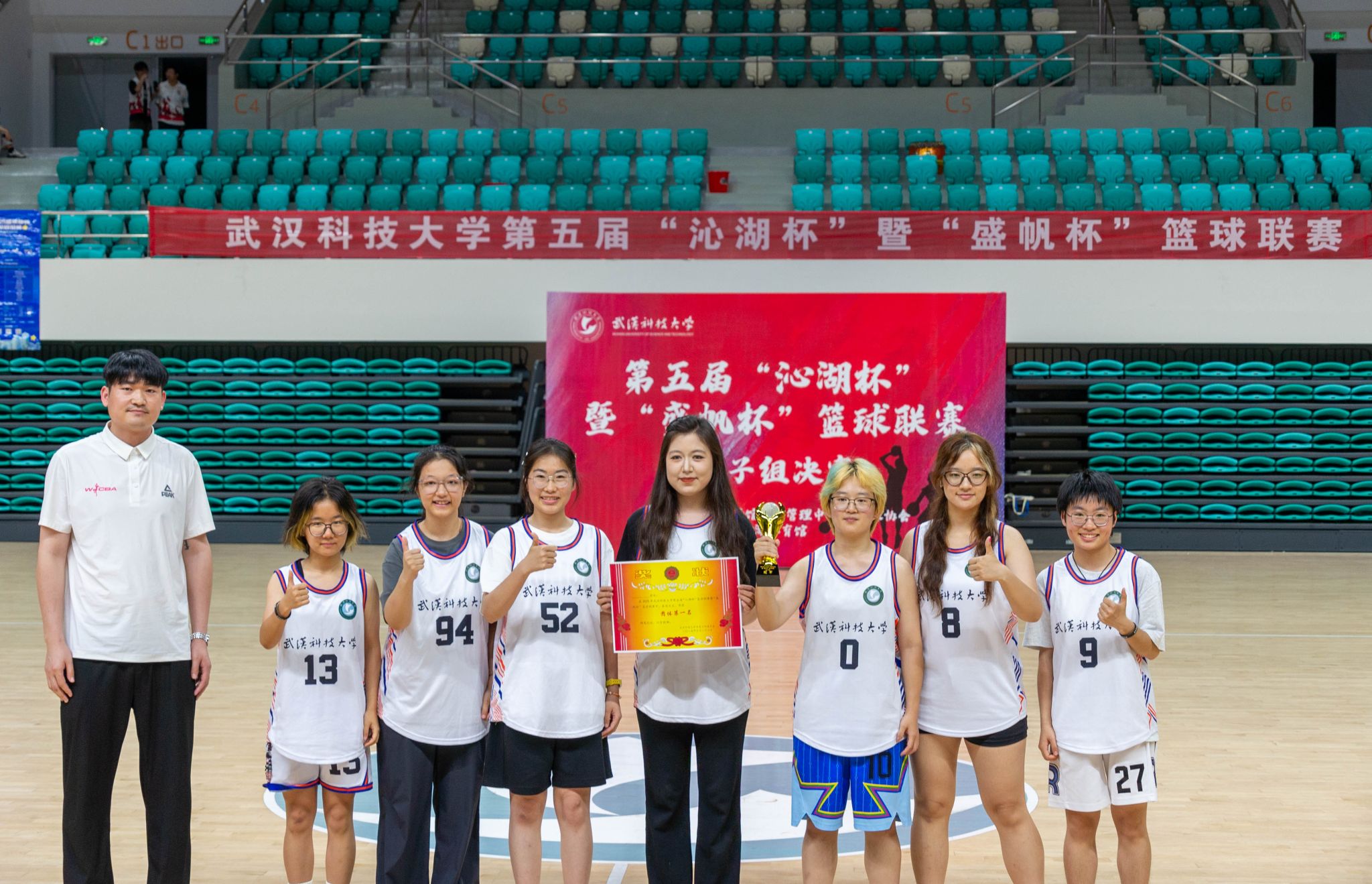 女子团体第一名颁奖合照 王翔宇摄