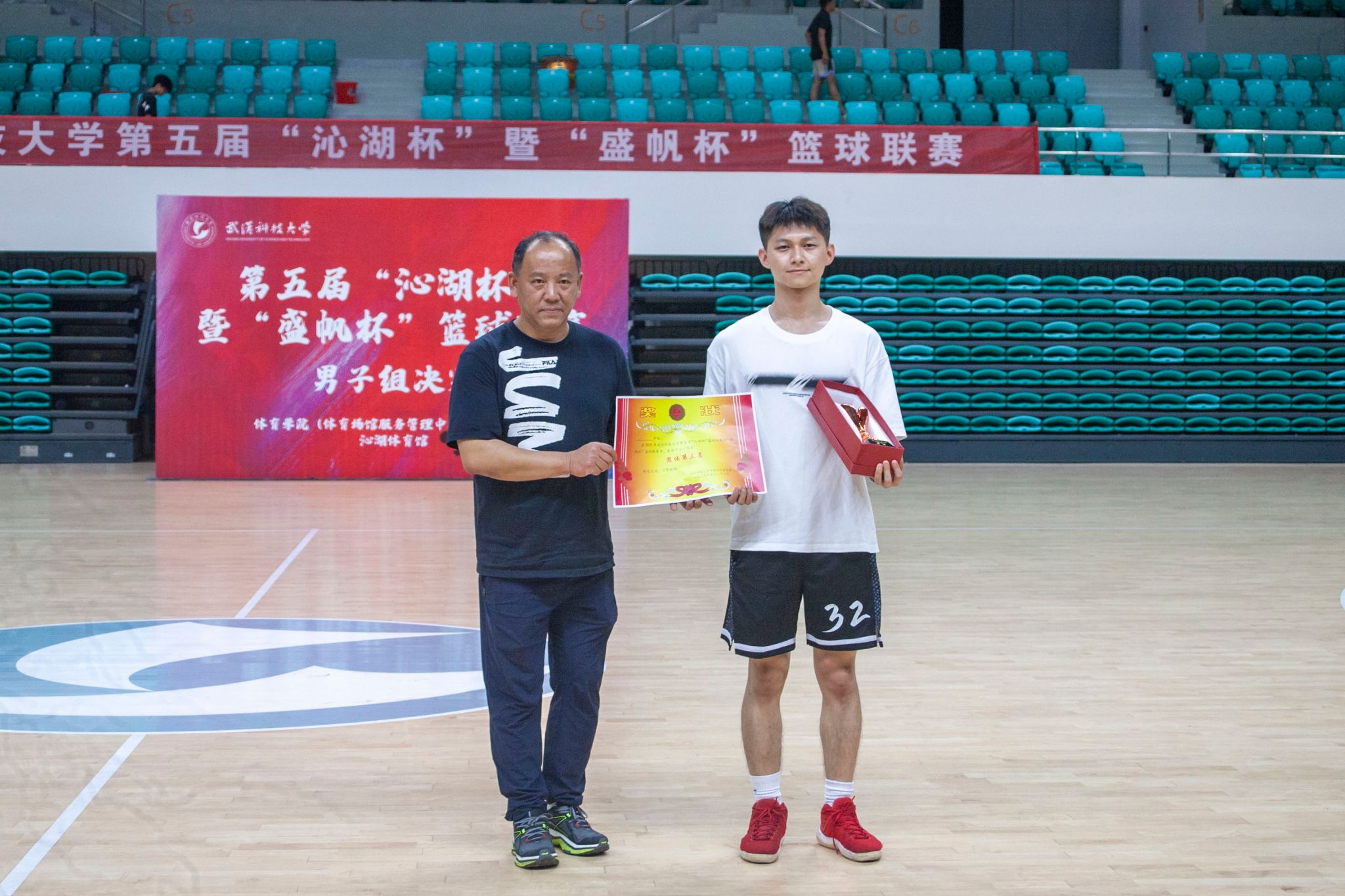 饶威为优秀裁判员颁奖 特写 王翔宇摄