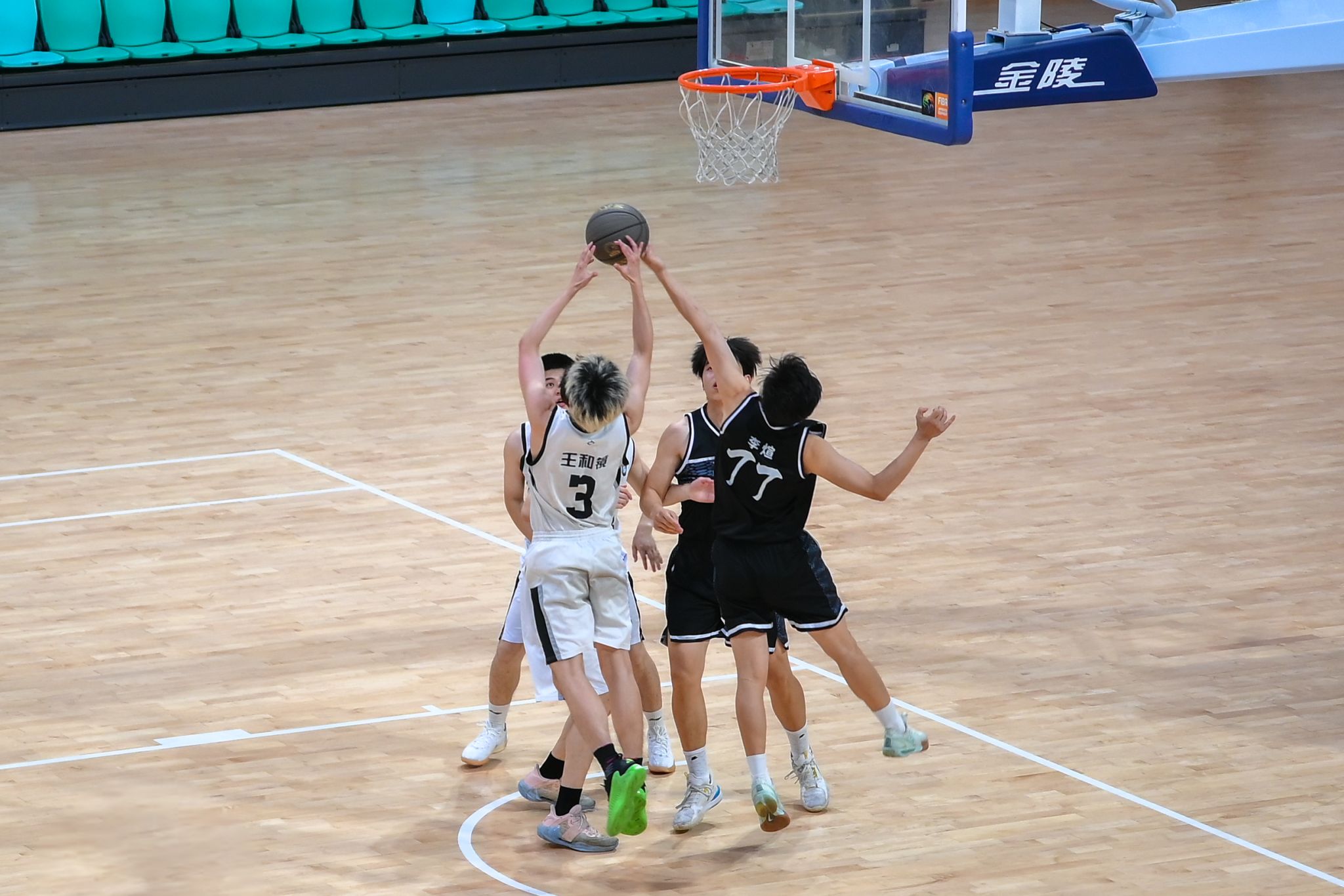 篮下抢篮板 远景 王翔宇摄