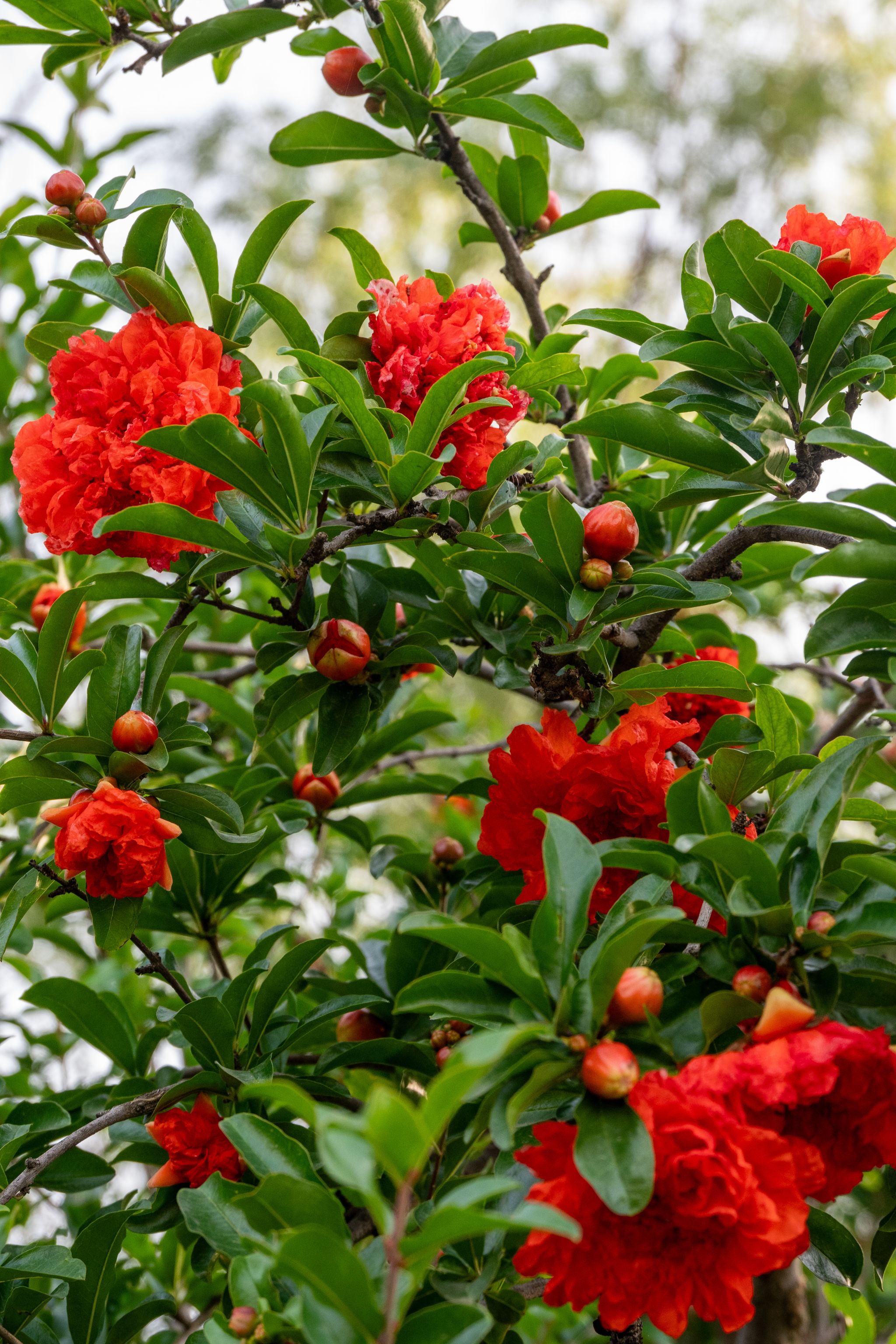 石榴花为石榴科石榴属落叶灌木或小乔木,别名安石榴、丹若。叶片对生或簇生,矩圆形,花朵单生或数朵顶生,花瓣肉质,有鲜红、粉红等色,花萼钟形,艳丽夺目。它喜温暖向阳,适合在阳台、庭院种植。石榴花的花语是“成熟的美丽”与“多子多福”,因其果实饱满、籽粒众多,象征着家族兴旺。除观赏外,石榴花可泡茶,果实富含维生素 C,具有较高的食用价值。花期在5-6月,js官网百花园、沁心岛周边、国际学院附近可见。
