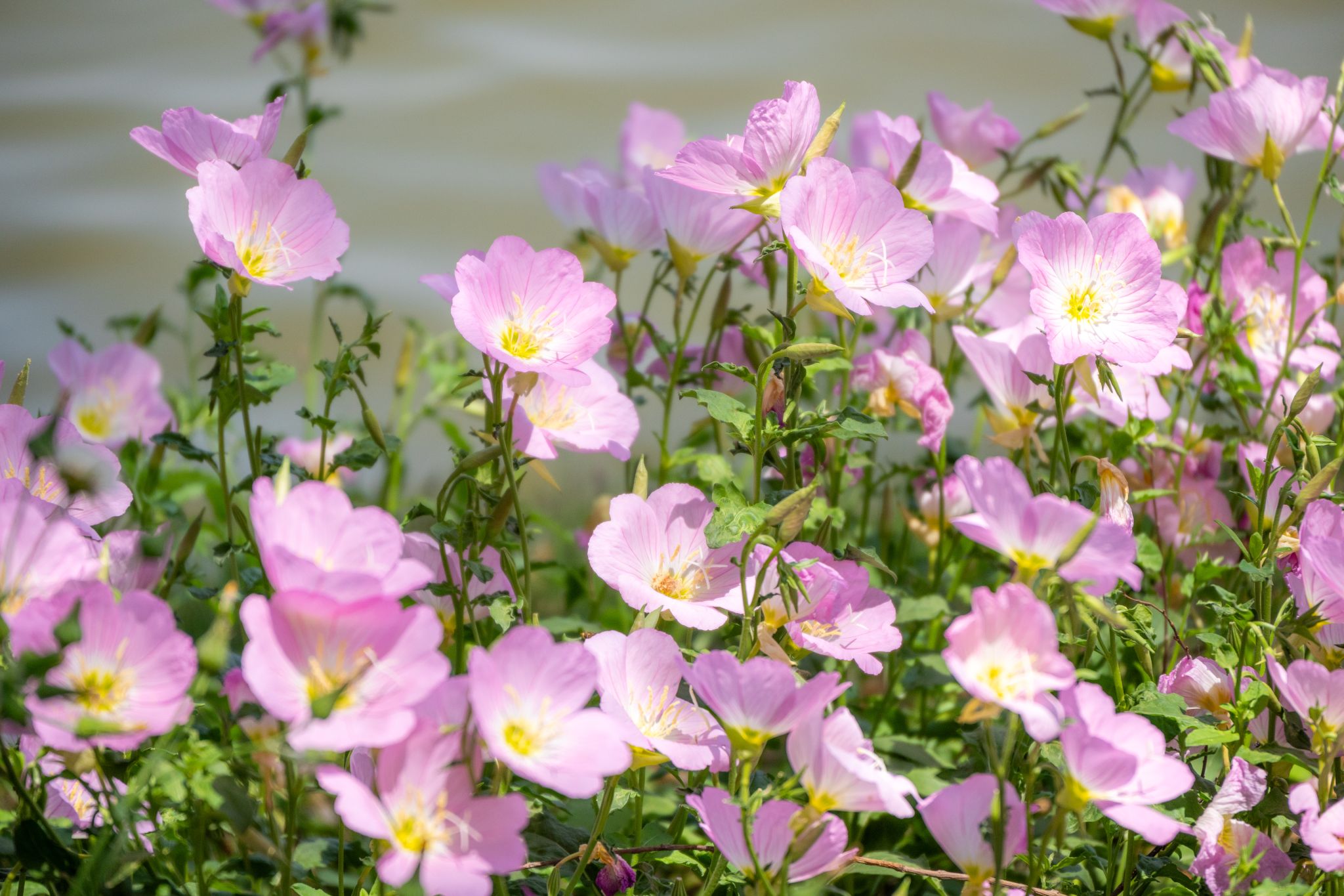 美丽月见草是柳叶菜科月见草属多年生草本植物,别名夜来香、粉花月见草。花期时,花朵单生于枝条顶端,花瓣呈倒卵形,花色多为粉白色或淡粉色,傍晚至清晨盛开时如杯盏绽放,散发淡雅香气。它适应性极强,耐寒耐旱,可作为园林观赏植物。它的花语是“默默的爱”与“不羁的浪漫”,因夜晚绽放却不张扬的特性,象征着深沉而含蓄的情感。花期在5-10月,js官网沁湖边、竹林里和理学院后可见。