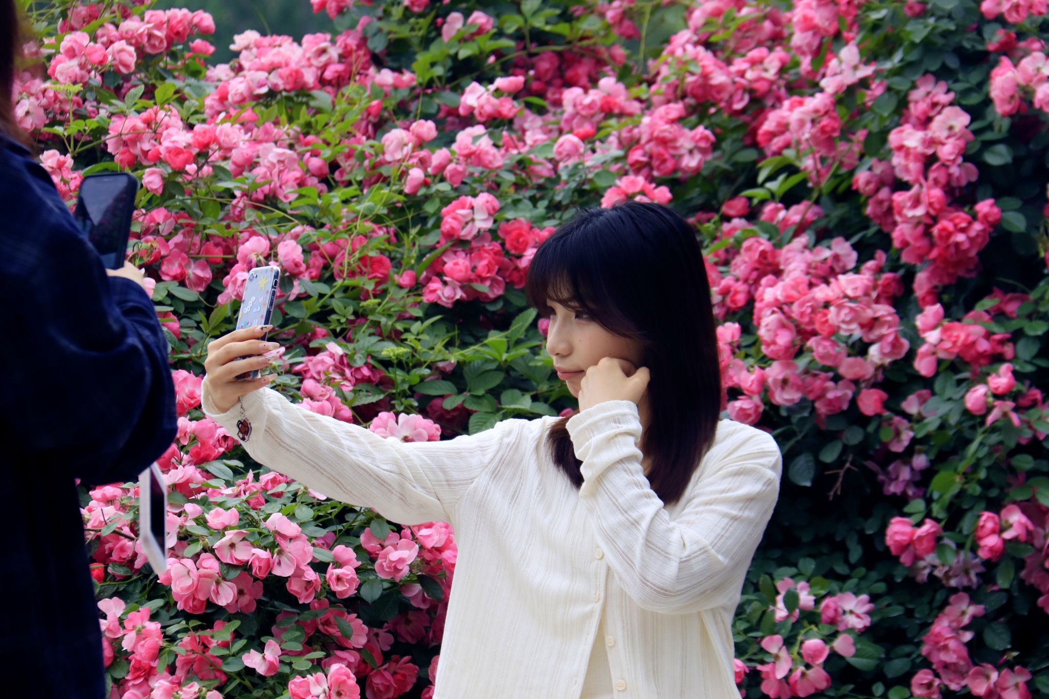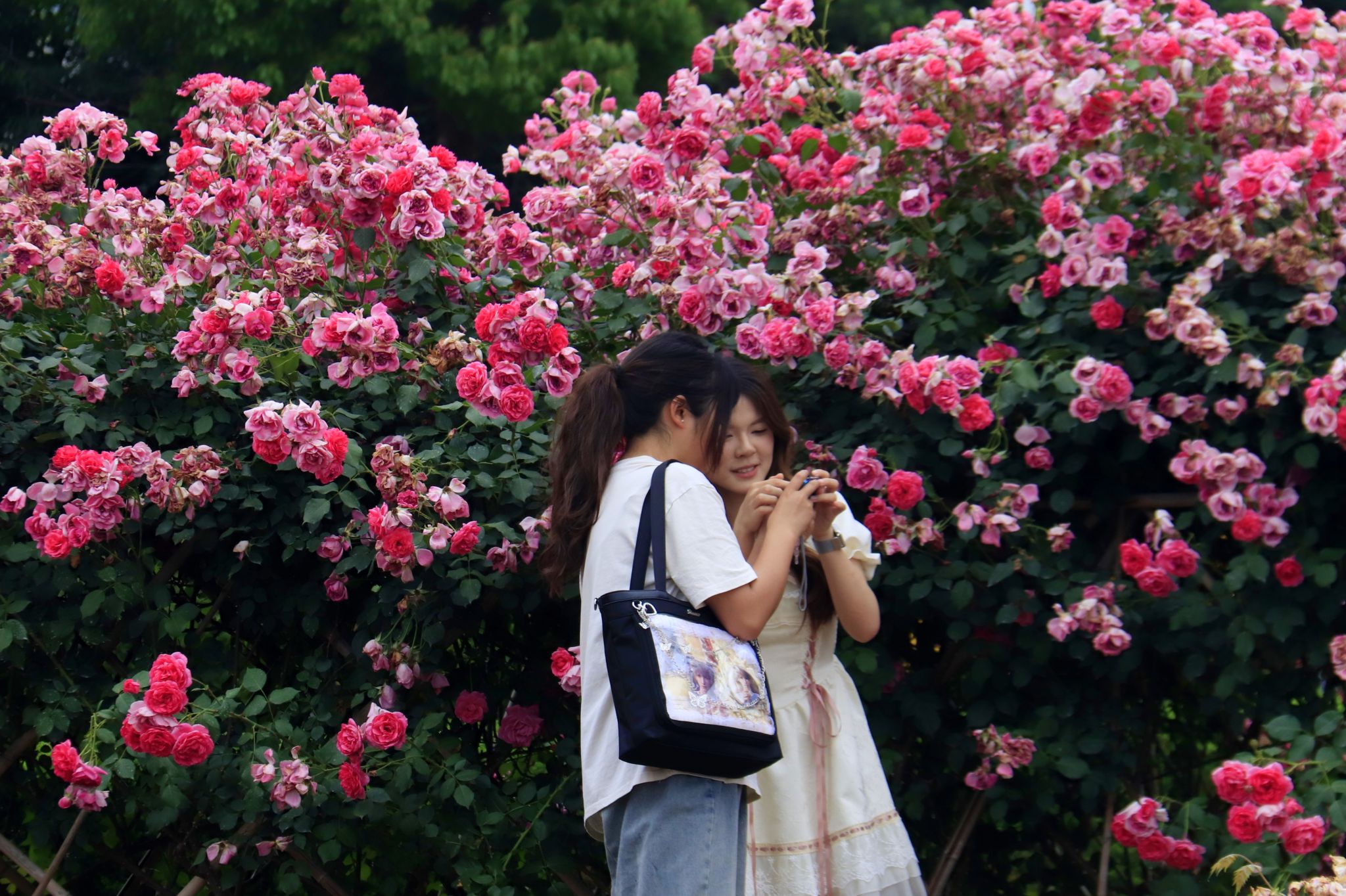 学生与蔷薇合影 郭劼摄