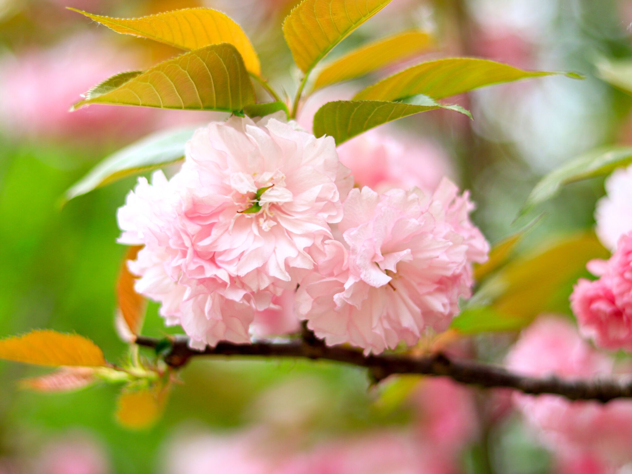 晚樱属于蔷薇科樱属落叶乔木,别名重瓣樱花,是樱花家族中花期较晚的品种。其叶片椭圆状卵形,花朵大而艳丽,花瓣层层叠叠,有粉红、白色等色,盛开时花团锦簇,如云霞般绚烂。晚樱喜阳光充足的环境,耐寒性较强,常作为行道树或园林景观树。晚樱的花语是 “转瞬即逝的美”,象征着美好的事物虽短暂却令人难忘。花期在4月左右,js官网樱园、北园研究生宿舍附近可见。