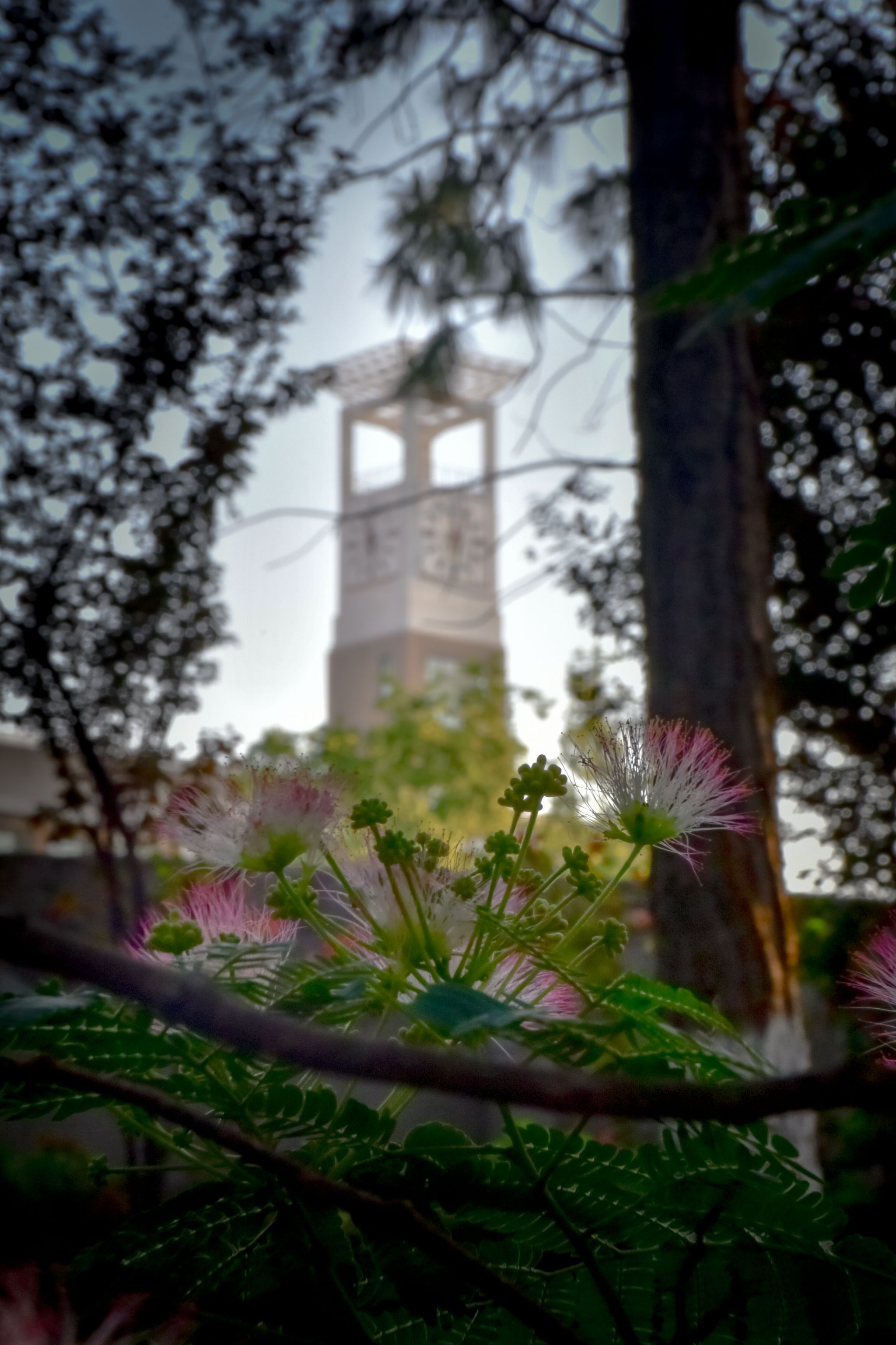 合欢花与钟楼 陈楷林摄