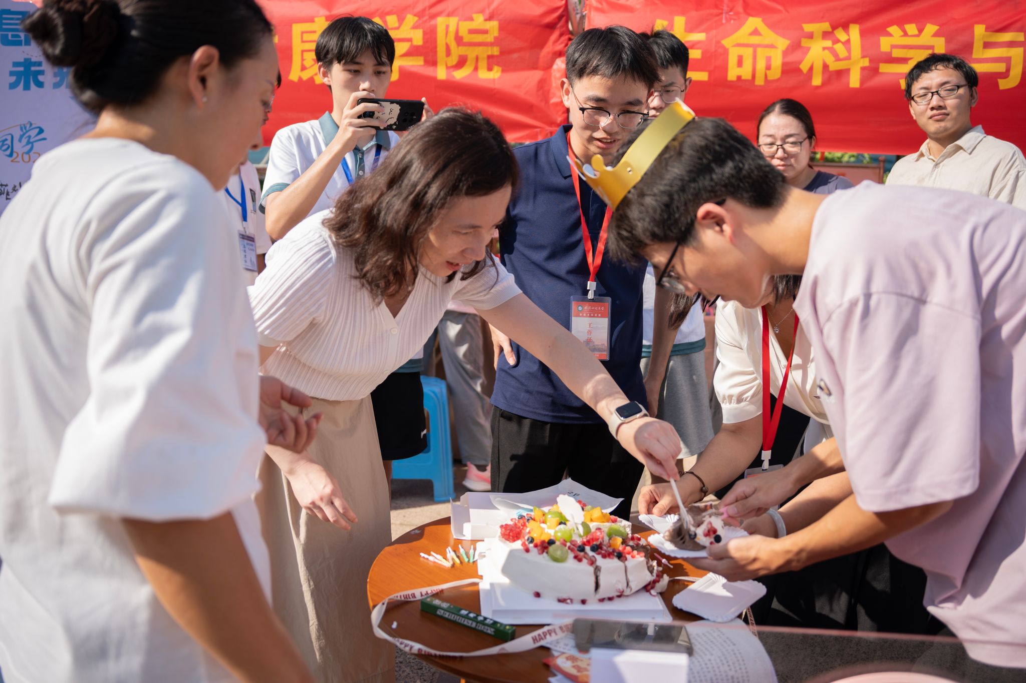 生科院老师为生日的新生带上生日帽 张贝贝摄
