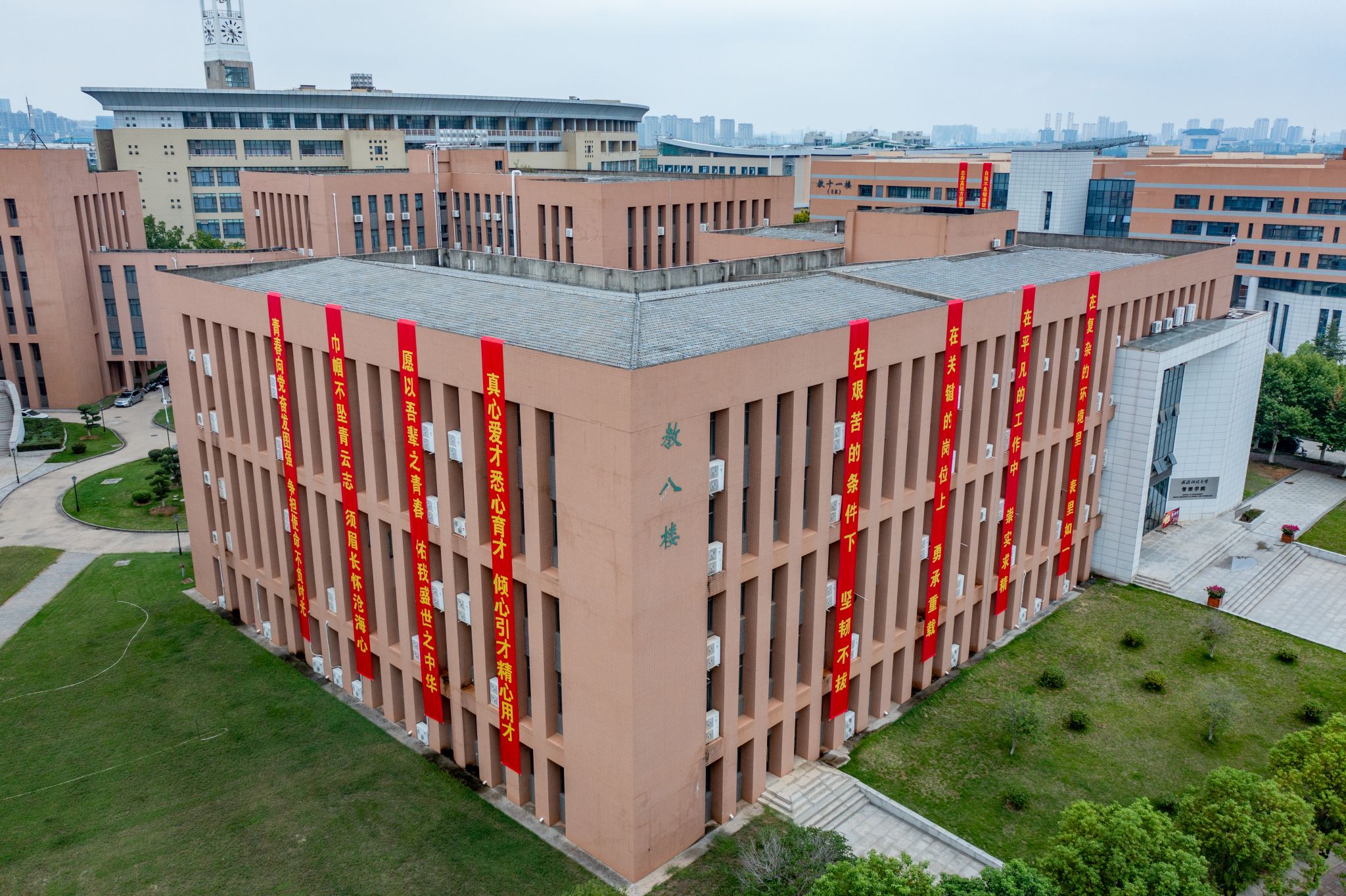 教八楼迎新标语 孙正恒摄