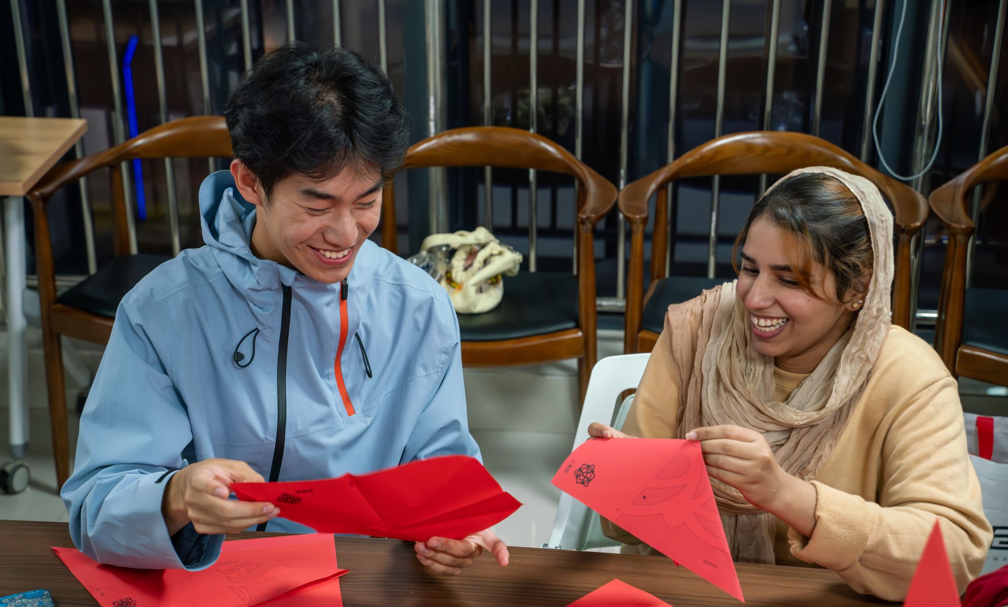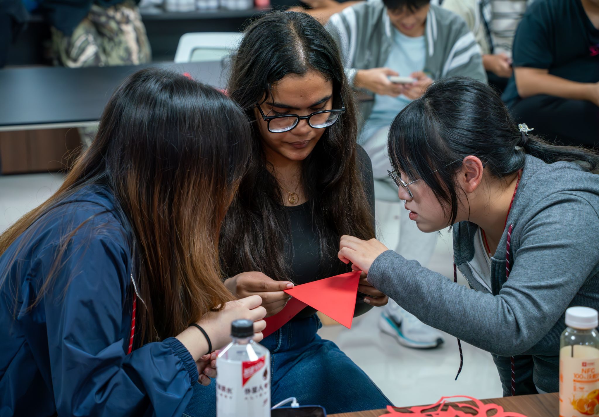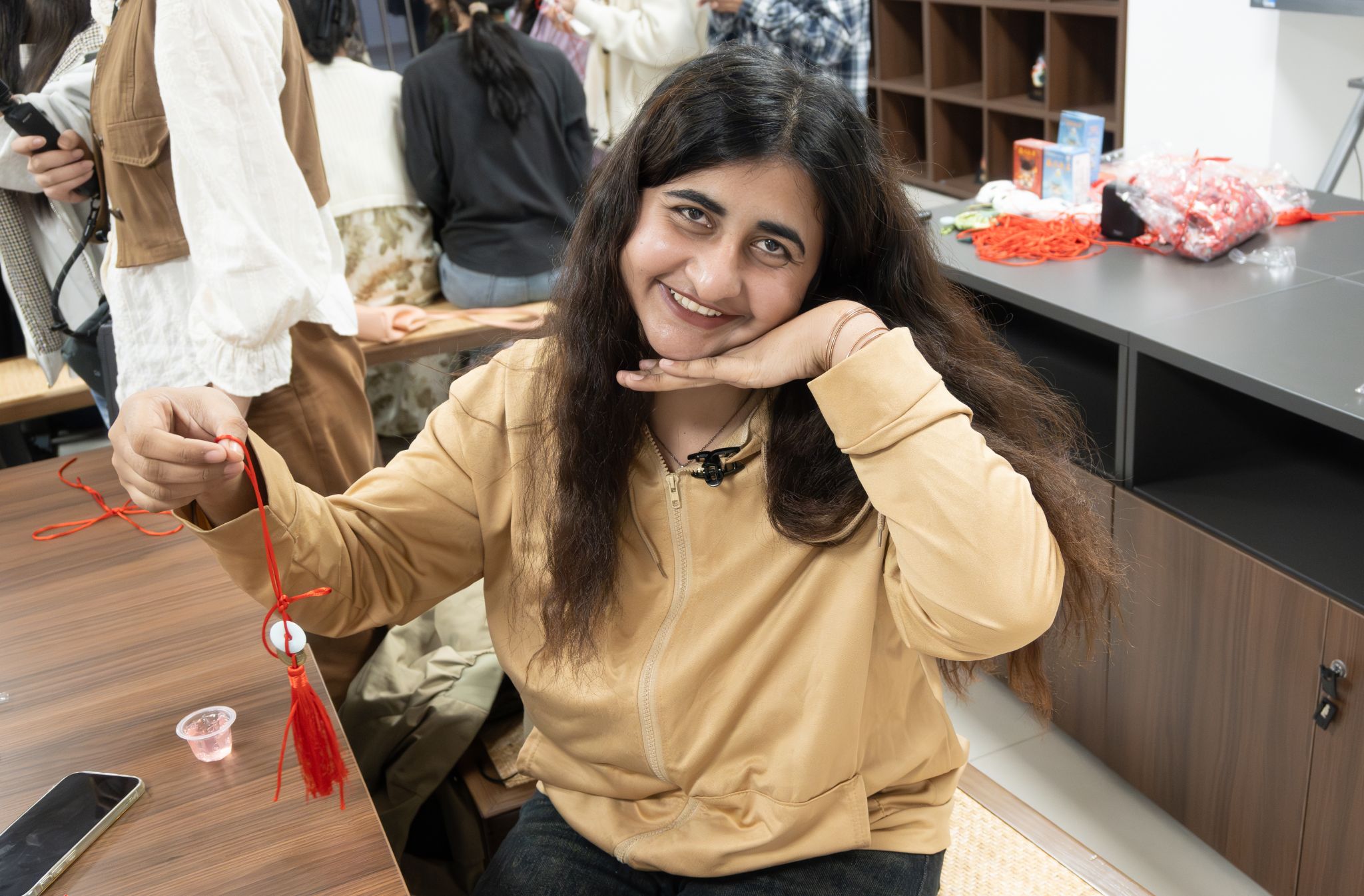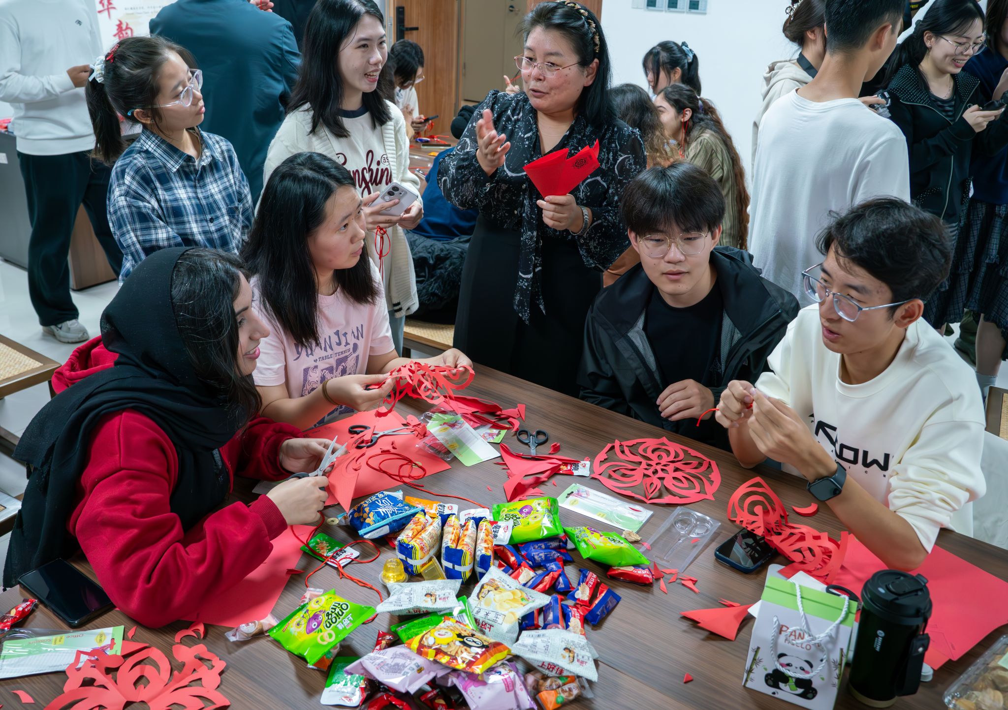 留学生和中国学生一起翻花绳 宋晓雅摄