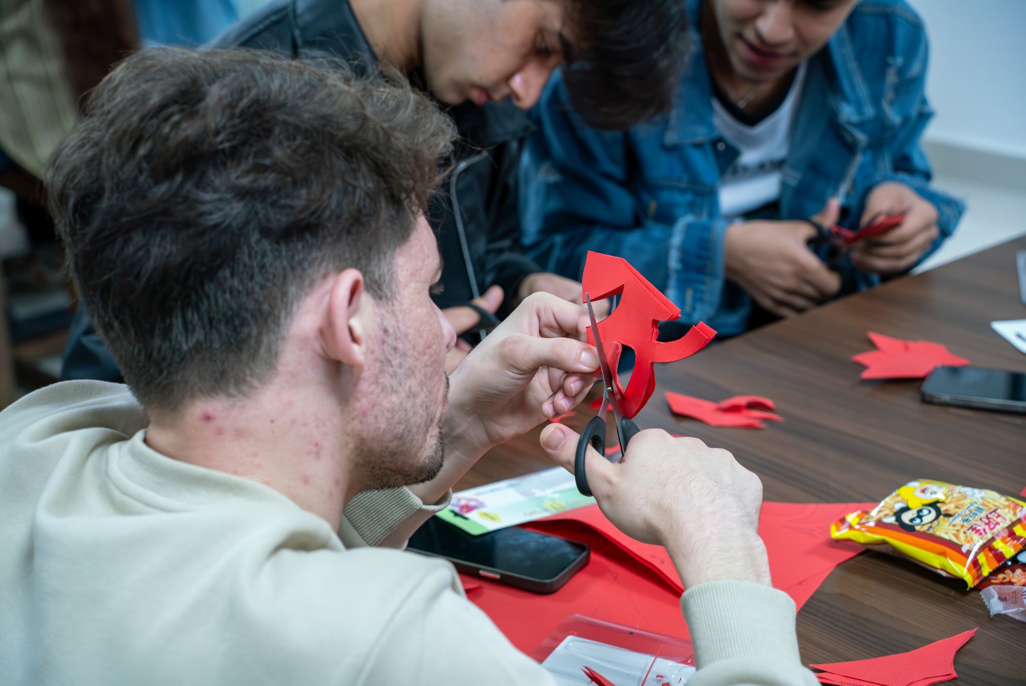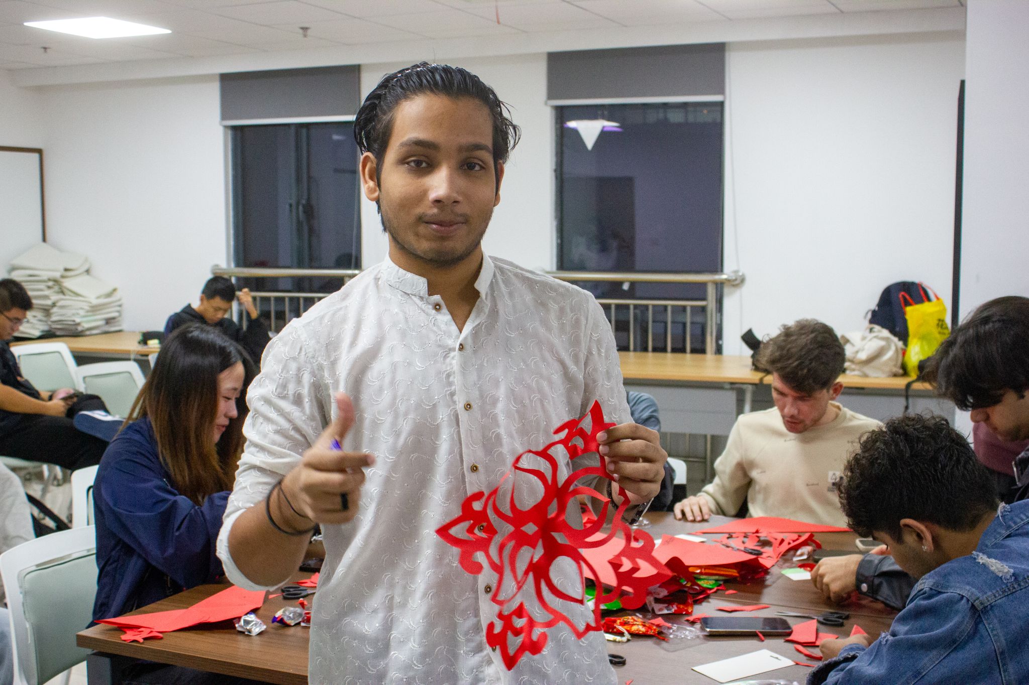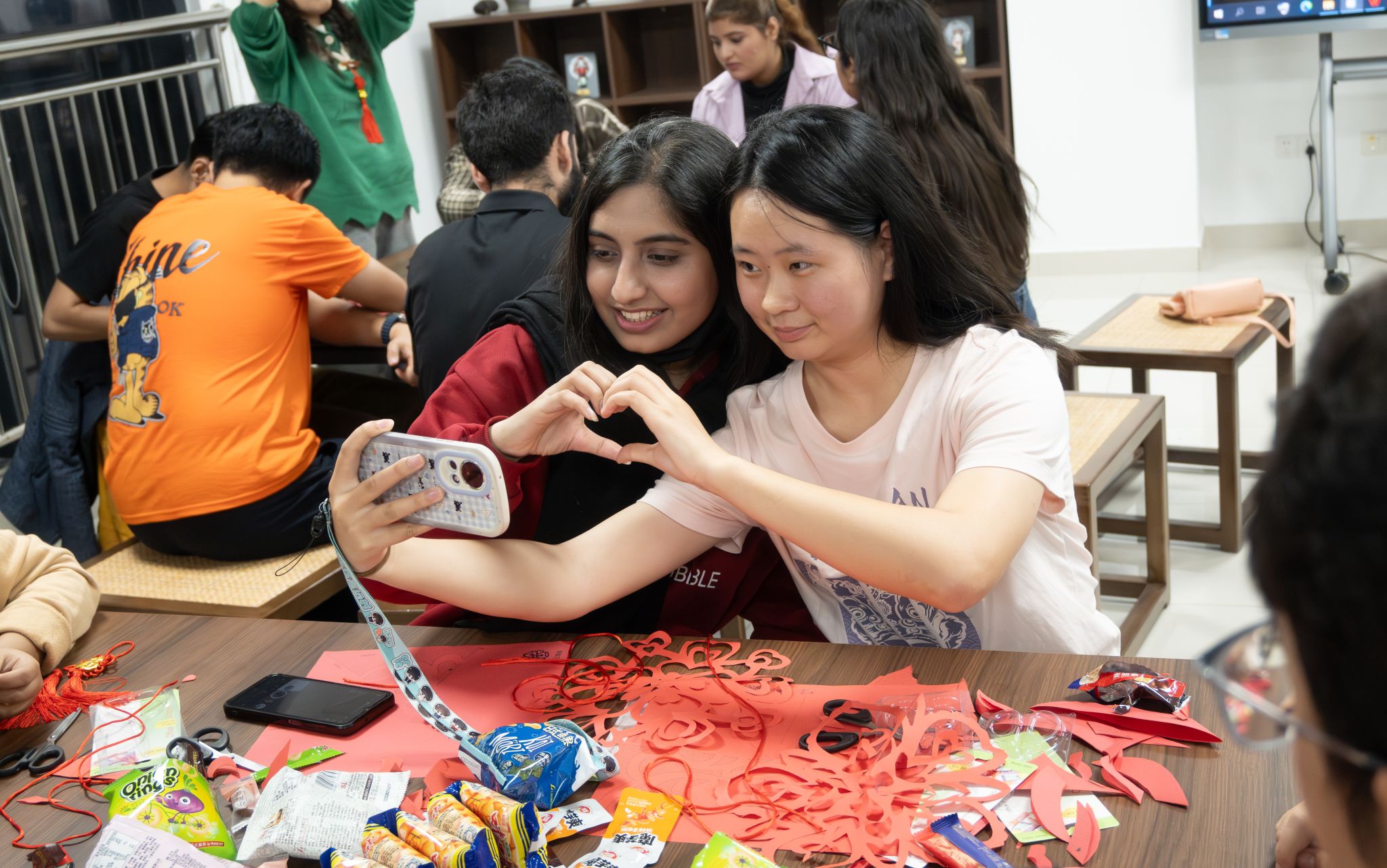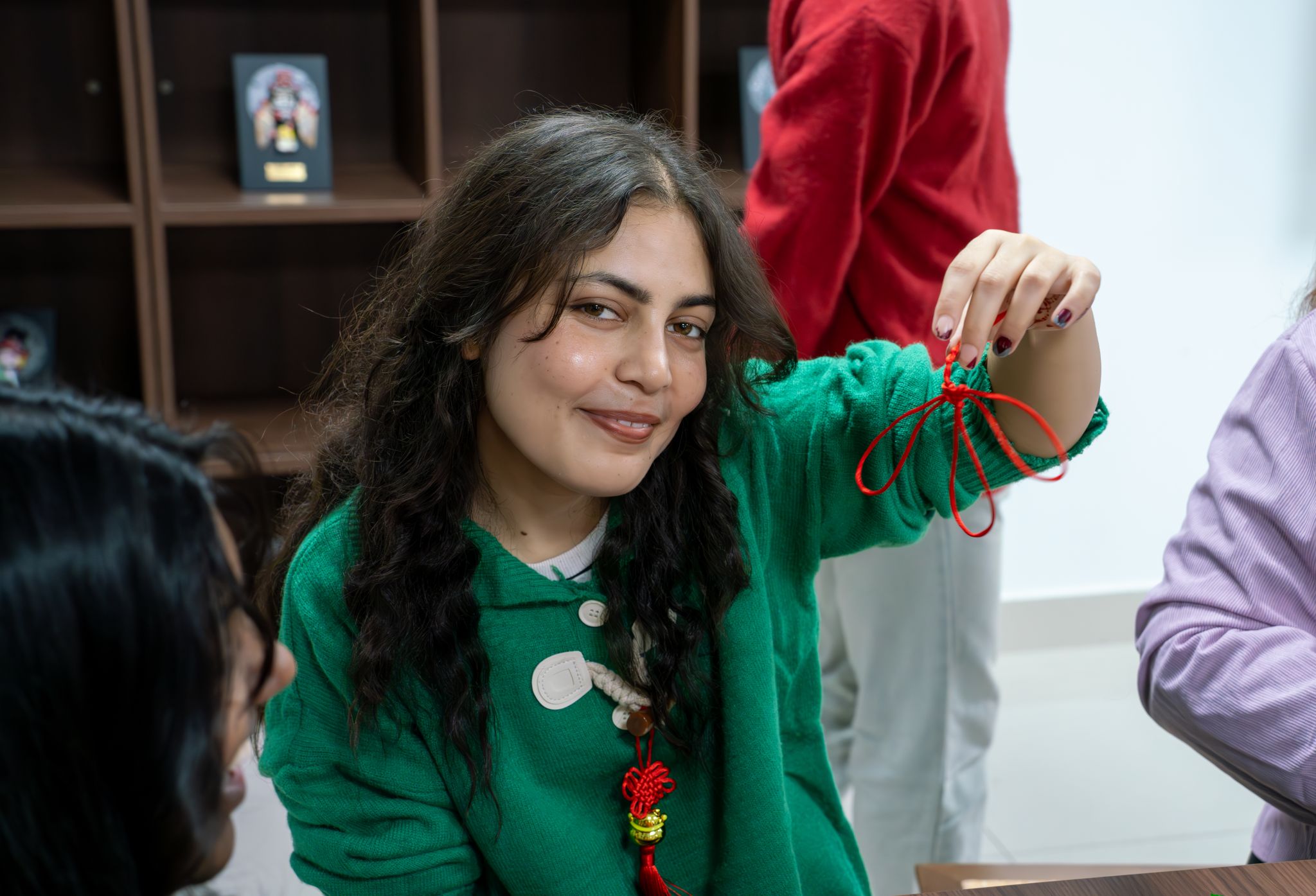留学生和中国学生一起翻花绳 宋晓雅摄