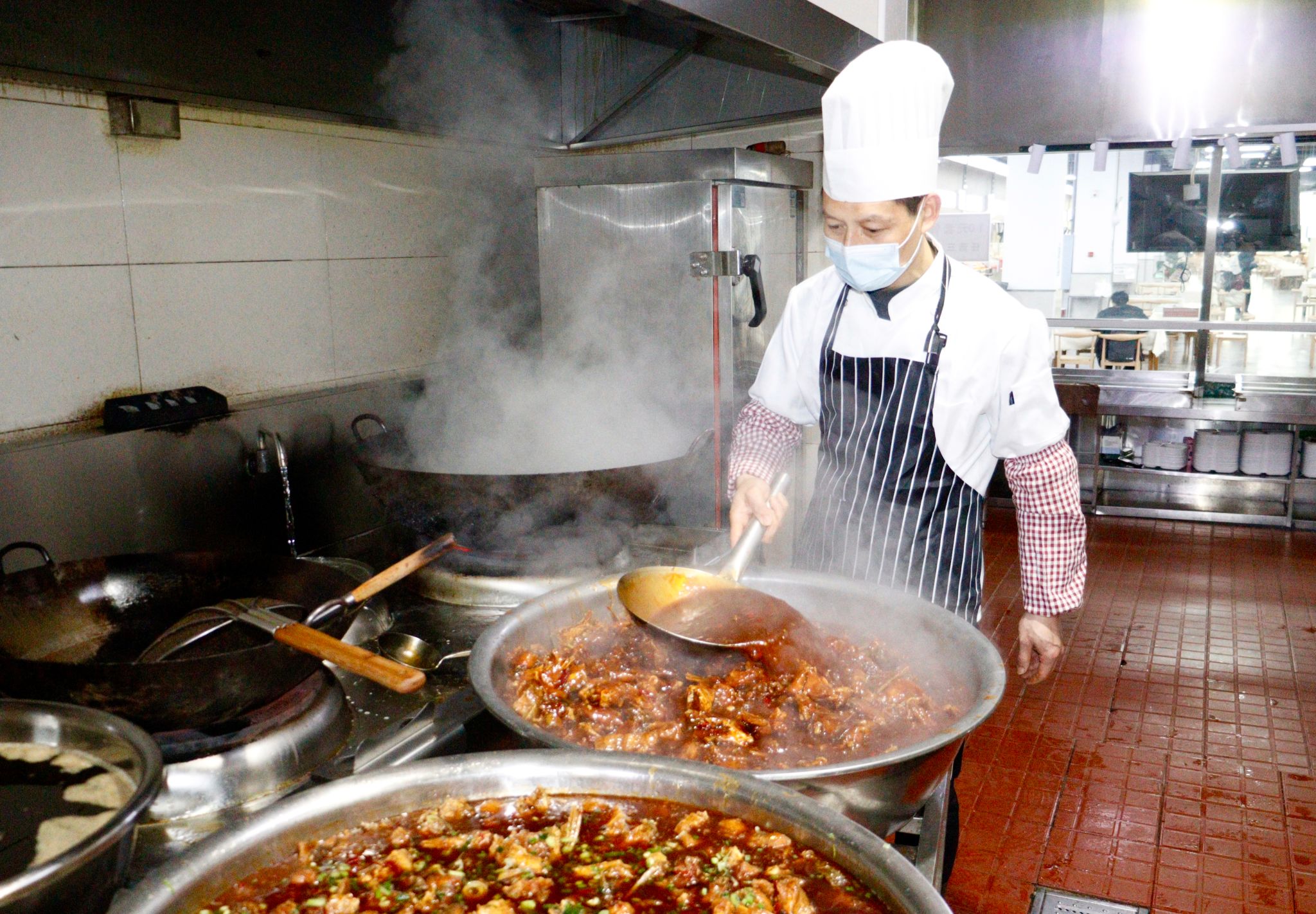 厨师准备鱼宴 杨欣怡摄