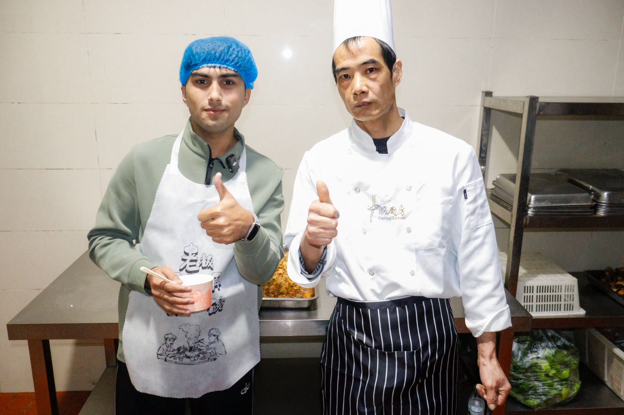 留学生和厨师合影 杨欣怡摄