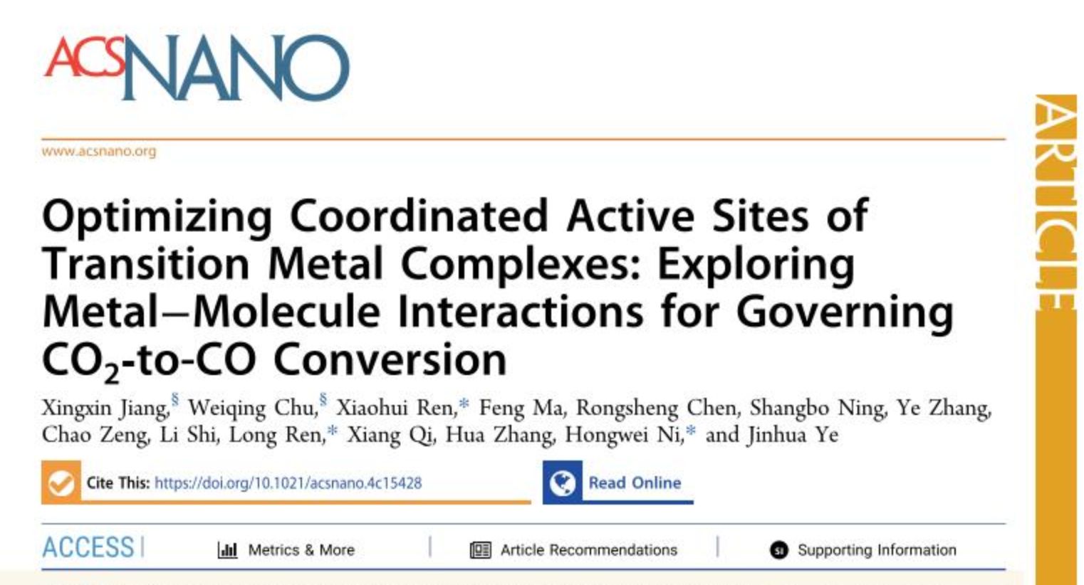 武科大网讯 近期,js官网冶金与能源学院倪红卫教授团队与上海大学等多家科研单位展开合作研究,在《ACS Nano》发表题为“Optimizing coordinated active sites of transition metal complexes: exploring metal-molecule interactions for governing CO2-to-CO conversion”的重要研究成果(DOI:https://doi.org/10.1021/acsnano.4c15428)。