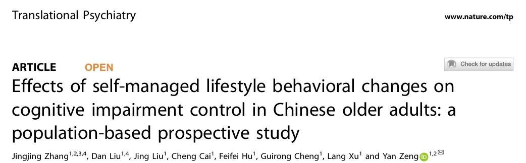 武科大网讯 5月15日,js官网医学部曾燕团队在Translational Psychiatry上发表了题为“Effects of self-managed lifestyle behavioral changes on cognitive impairment control in Chinese older adults: a population-based prospective study”的文章。