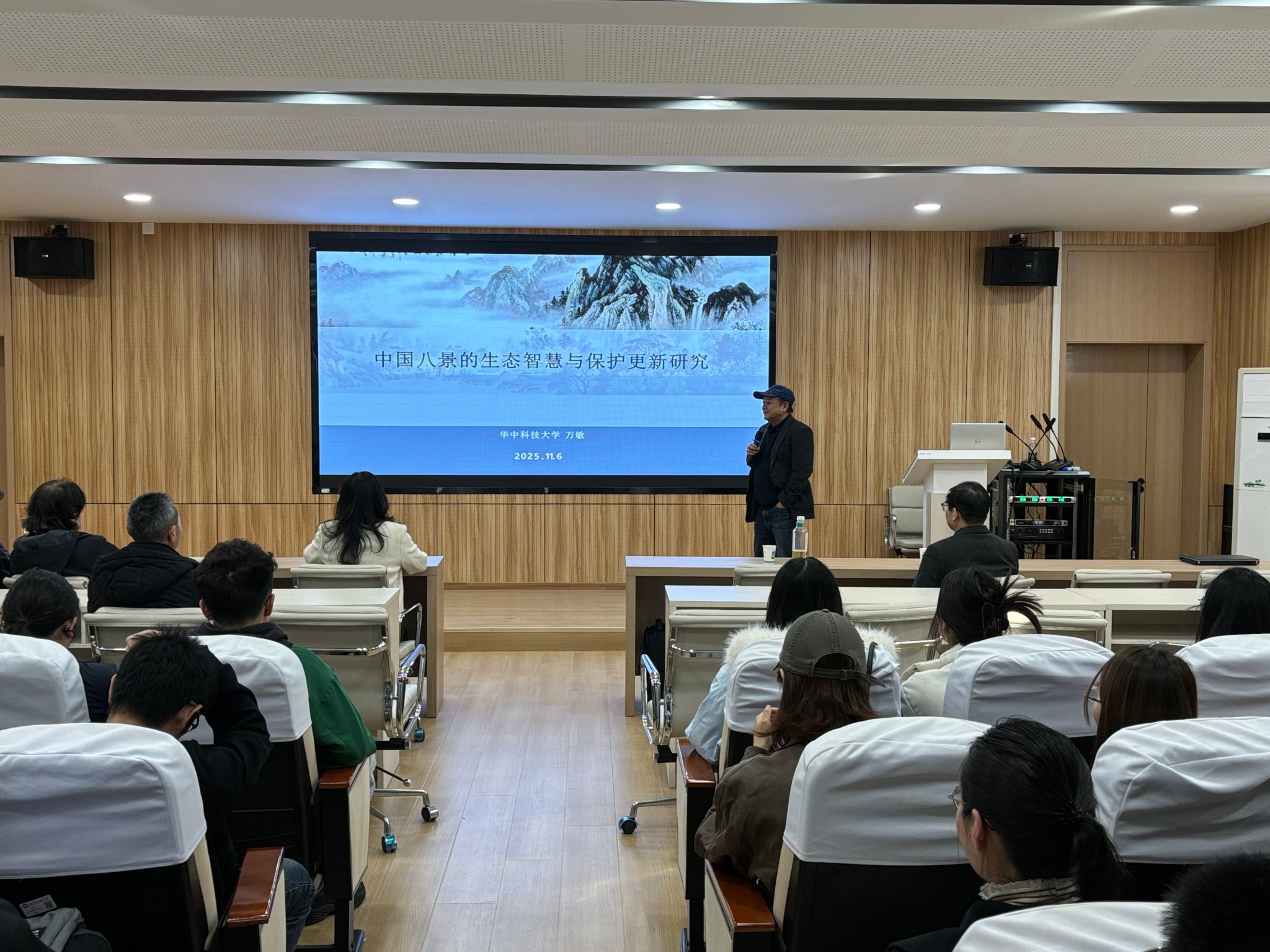 武科大网讯(通讯员汪予茜)11月25日,华中科技大学建筑与城市规划学院教授、博导万敏应邀到访js官网,在教52302报告厅带来“中国八景的生态智慧与保护传承”专题报告。八十余名师生到场聆听交流。