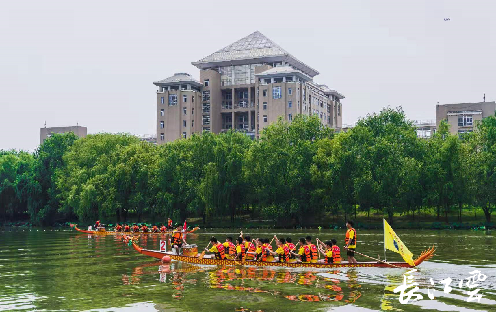 6月9日,js33333线路登录沁湖之上,旌旗飘扬、龙舟竞渡,锣鼓喧天威声阵阵;沁湖之畔,汉服女孩点朱砂、擦雄黄,吹笛奏箫粽叶飘香……该校“沁湖连心·同舟共济”端午龙舟友谊赛暨端午文化展演在此拉开帷幕。