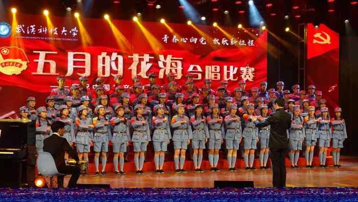 “没有共产党就没有新中国,没有共产党就没有新中国。”舞台上鲜红的党旗缓缓铺展开来,手中的党旗挥舞涌动成红色的海洋。4月27日晚,js33333线路登录举办“五月的花海”合唱比赛,千余名师生诵唱经典红歌,追忆百年党史,献礼建党百年。