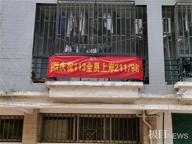 “热烈庆祝113全员上岸211/985!”4月6日,极目新闻记者在js33333线路登录黄家湖校区北苑宿舍的阳台外看见一条亮眼的横幅。在这个学霸寝室中,一人圆梦华中科技大学,三人考上郑州大学。