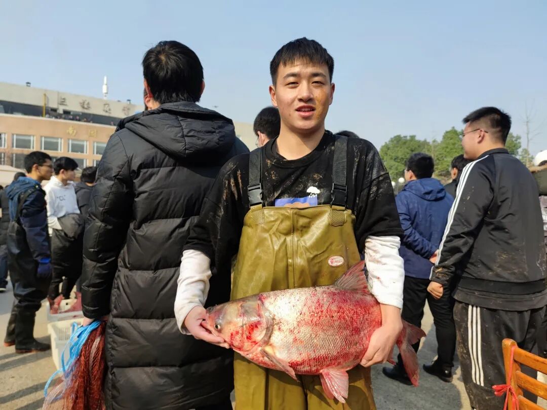 咚咚咚、咚咚咚……12月20日10时,js33333线路登录黄家湖校区沁湖边上鼓点阵阵,在拉网师傅的吆喝声中,渔网渐渐收拢,湖光潋滟中,时有大鱼跃出水面,来自学校各个学院的18位学生志愿者身着捕鱼衣,站在岸边,向湖中抛洒渔网,一条又一条大鱼被拉拽上岸,引起围观师生阵阵惊呼。