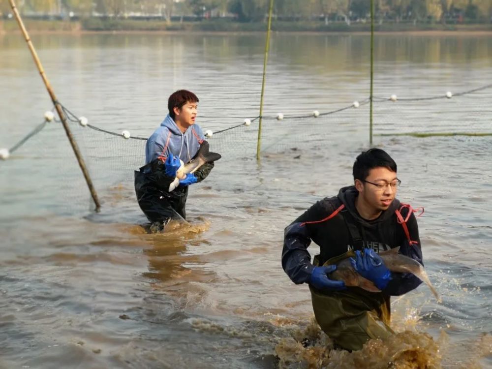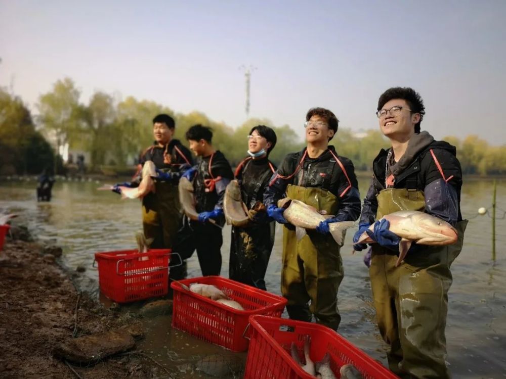 除了参与捕鱼之外,18位同学还需要各自从捕捞上来的鱼当中挑选一条最大的过磅,竞争今年的“捞鱼王”称号!最终,来自艺术学院的张哲晗以一条7.8公斤重的鱼获得荣膺“捞鱼王”,而来自机械学院的学生彭鸿博则凭借一网捞起70多斤鱼摘得“捕鱼王”桂冠。