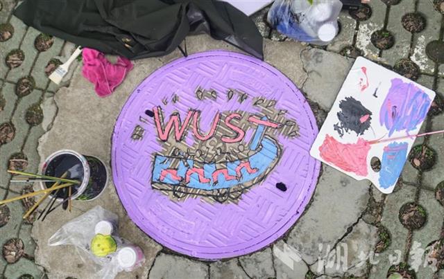 学生乔亦婷将武汉长江大桥画在窨井盖上,她是武汉人,想在窨井盖上展示武汉特色。乔亦婷介绍,窨井盖凹凸不平,着色慢,还需反复上色,颜料难以干透,这些实际问题导致作品与设计稿存在差异,但最终她圆满完成了作品,“画画不能急于求成,要一步一步做好。”