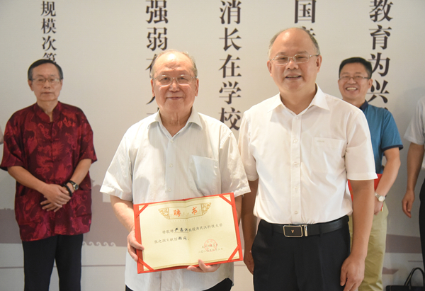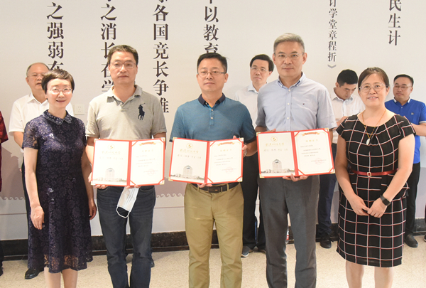 在开馆仪式上,倪红卫为严昌洪、顾必阶、肖书喜、何广颁发了张之洞文献馆顾问的聘书,为武科大历史与文化研究所所长张继才教授颁发了张之洞文献馆名誉馆长的聘书。学校副校长刘静为宁波校友会、钢铁专业92级校友代表颁发了捐赠证书。