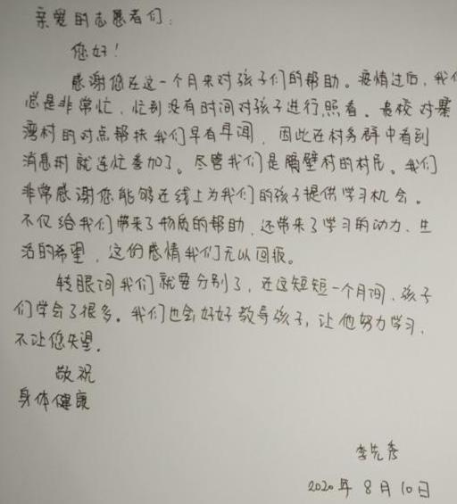 为了后续跟进孩子们使用爱心物资和线上学习的情况,武科大外院暑期社会实践团队特别邀请了参加本次支教活动的两位学生家长进行线上家访,这不仅加深了团队成员对孩子们暑期网课学习、家庭情况、学习习惯等方面的了解,也为后续的课程教学和辅导指明了改进的方向。