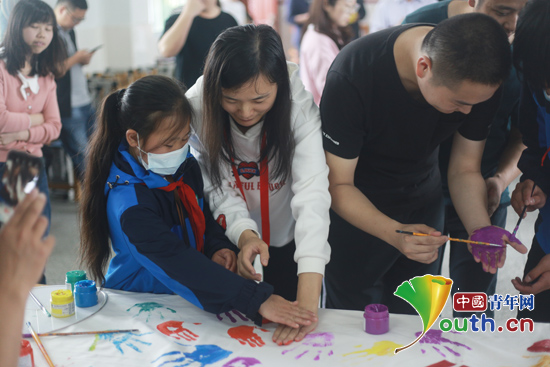 活动分为“球球大逃亡”“接力传皮球”“一反常态”“彩色童年”涂鸦等四个环节。在互动游戏环节中,30位留守儿童与参与活动的嘉宾全情投入,在一片欢声笑语中,每个小组都顺利完成了各项游戏。在“彩色童年”涂鸦环节,小朋友们将水粉颜料涂在手掌上,再将手掌压在白色画布上绘制梦想。