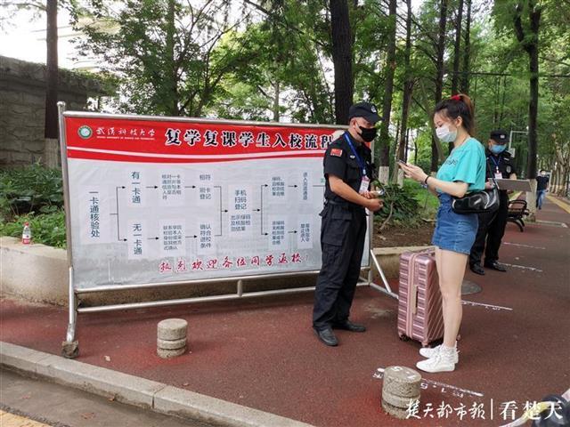 楚天都市报6月15日讯(记者肖杨 通讯员程毓)6月15日,js33333线路登录迎来首批返校学生。早上8点,陆续有学生们在校门口排队,依次验证身份、扫码、测温、消毒,进入校园。然后,到所在学院办理手续,领取毕业证和学位证,到宿舍收拾行李。现场秩序井然。截至下午5点,2300多名毕业生有序入校。