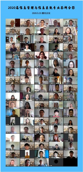 最先提议的,是武科大信息管理系主任严亚兰。即将举行2020届信息管理与信息系统专业的“云”毕业答辩时,她看到不少学生问“老师,我们就这样毕业了吗?没有学位服,没有毕业照”。于是,她建议,在完成毕业答辩环节后,师生一起在腾讯会议的界面上合影截图,作为毕业纪念。大家纷纷表示赞同。