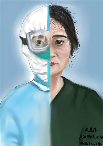 该校教师聂斌说:“2020 年的这个春天,因为一场突如其来的新冠肺炎疫情而不同寻常,师生创作美术作品,致敬逆行者、致敬生命、致敬祖国,为打赢这场疫情防控阻击战贡献自己的力量。”