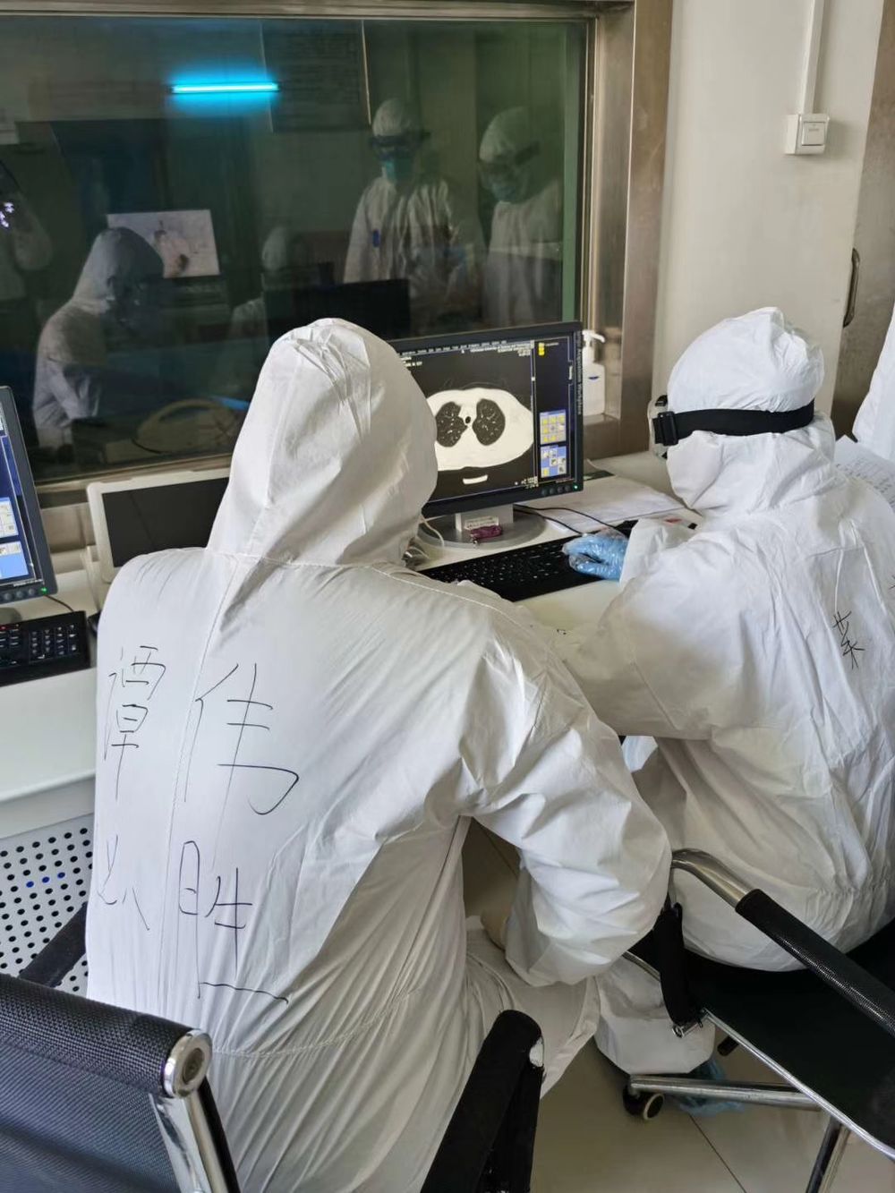 审核即将解除隔离患者的CT影像 张雅琴 摄