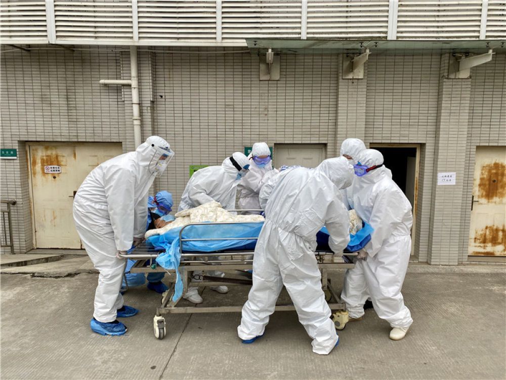 集体转运三甲医院重症患者 张雅琴 摄