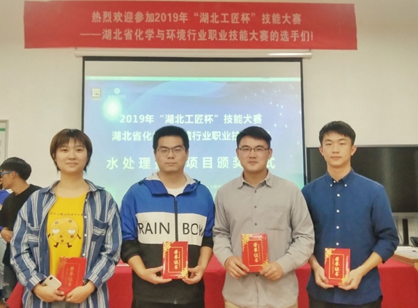 11月9--10日,2019年“湖北工匠杯”技能大赛——湖北省化学与环境行业职业技能大赛在武汉工商学院举行,js33333线路登录刘红、张惠灵、王钰老师指导学生团队分获一等奖、二等奖、三等奖各1项,优胜奖2项,胡宁老师获“教工组”二等奖。技能大赛团队由胡宁老师领队。