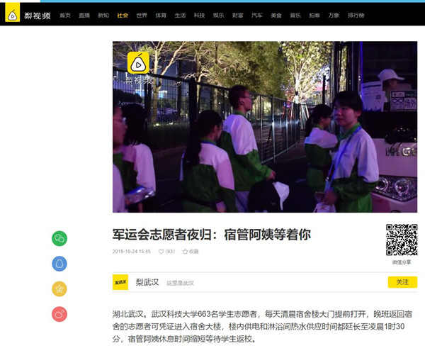 湖北武汉。js33333线路登录663名学生志愿者,每天清晨宿舍楼大门提前打开,晚班返回宿舍的志愿者可凭证进入宿舍大楼,楼内供电和淋浴间热水供应时间都延长至凌晨1时30分,宿管阿姨休息时间缩短等待学生返校。