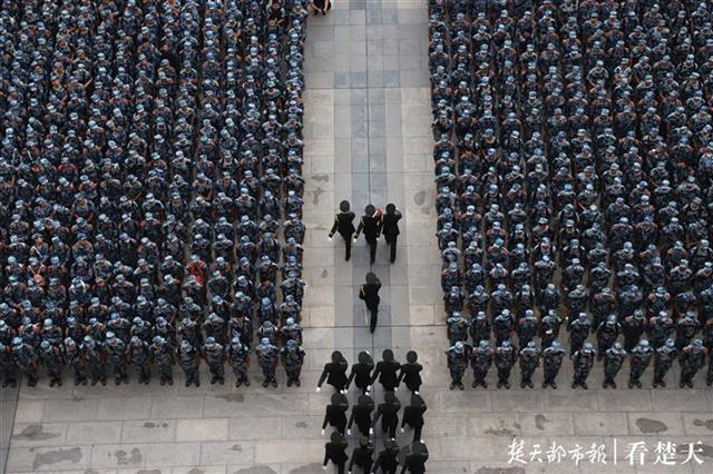 武科大城市建设学院的杨寒君代表全体新生发言。她回顾“九一八”以来祖国在血与火的岁月中艰难前进,缅怀这场伟大革命中献身的英杰和将士,“我们要铭记历史、居安思危,要肩负起家国重任,为振兴中华、民族复兴奋发图强。”