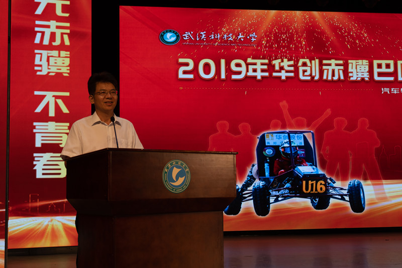 武科大党委副书记盛建龙在发布会上致辞,武科大高度重视大学生创新能力的培养,着力将创新教育贯穿人才培养的全过程。赤骥车队经过不断地传承和创新,已经成为了武科大创新实践地典范,成为学子以及汽车爱好者相互学习、共同探讨、切磋技艺、共同发展的第二课堂。希望队员们继续发扬团结拼搏,奋勇争先的精神,在接下来的大学生方程式赛车比赛中砥砺奋进,再创佳绩。