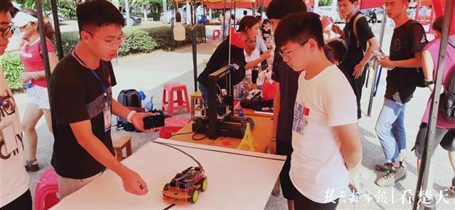 “这是什么啊,这些电路的设计原理又是什么啊?”“好炫酷的小车!我是第一次亲眼看到内部的构造。”9月6日下午,武科大信息学院的迎新帐篷下,一群学生簇拥在桌子前,用好奇的目光打量着桌子上的模型。