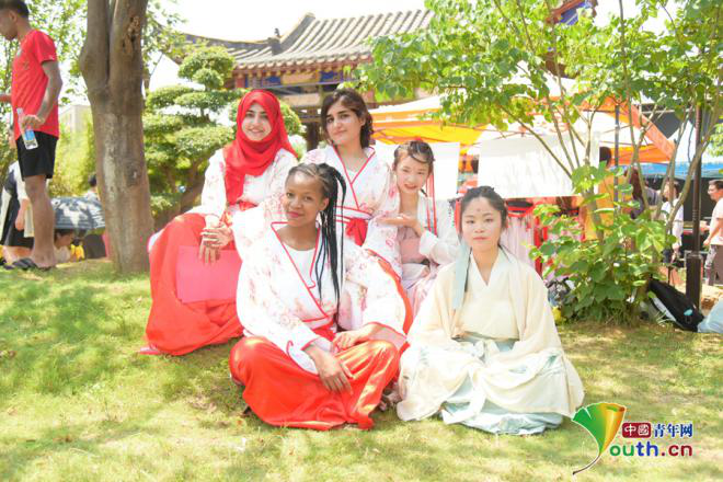 中外学生穿汉服。于晟加 摄