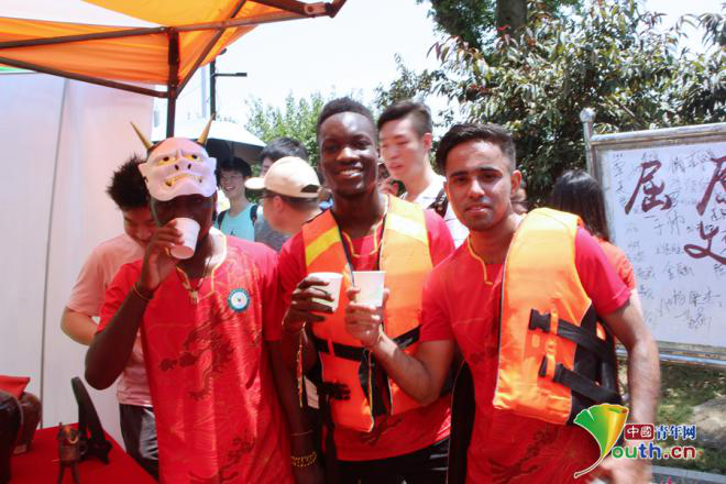 龙舟队的巴基斯坦留学生Adeel有一个地道的中文名“李绕梁”。他说:“在这个节日里我玩得很开心,端午节对我来说将成为很重要的节日。”
