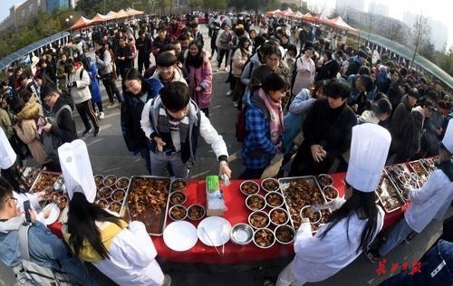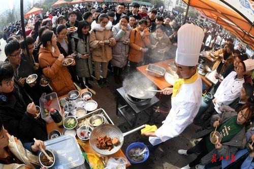该校还将于27日、28日在学校各个食堂门口免费供应给全校4万名师生品尝。该校校长倪红卫也赶到鱼宴的现场:“今年已经是沁湖鱼宴第四年,作为学校校园文化重要组成部分,沁湖鱼宴让学生们参与其中,亲自捕鱼,烹鱼,锻炼了学生们的动手能力。”