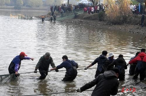 “咚咚,咚咚咚……”鼓声有节奏的响起,配合着拉网师傅的吆喝声,捕鱼渐入高潮。9时30分。渔网渐收,鱼迹渐显。水光潋滟中,时有大鱼泛起,溅落半湖冬色。
