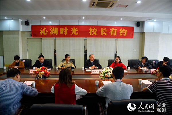 “沁湖时光·校长有约”活动现场,武科大校长倪红卫与学生交流十九大学习体会