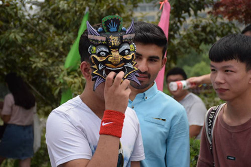 “驱邪逐疫,文化瑰宝”。形态迥异、栩栩如生的鬼神面具,展现了东方审美的意趣。自由绘制和佩戴面具,吸引了留学生亲身体验“傩文化”。