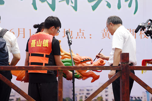 校长倪红卫为龙舟“点睛” 摄影 方斌